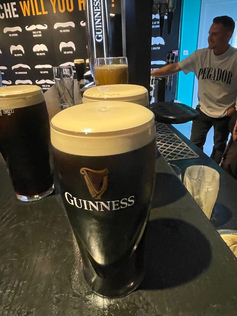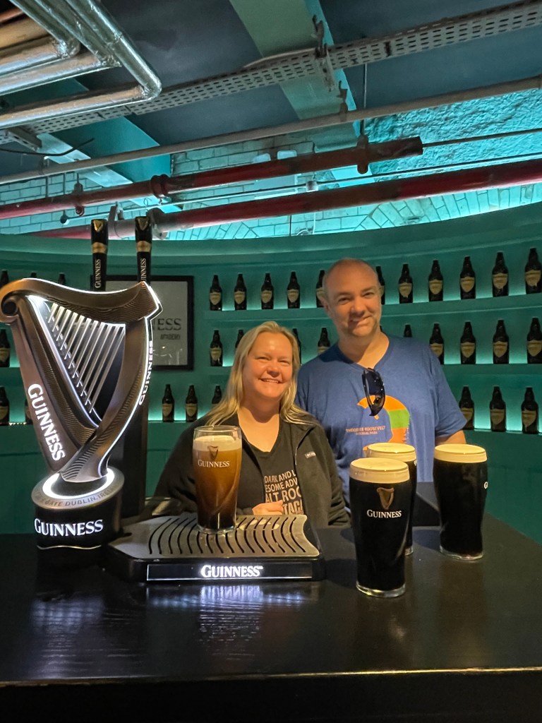 My husband is not a big fan of Guinness, so I bought him just the tour, which comes with a beer sample. I bought the tour for myself that teaches you how to pour the perfect Guinness. When we got to the floor with the pouring station, I let the woman know that my husband would be just watching and she said it was no problem. However, when we got to the part where we got to pour, she let him do it too. This was nice because then we could sit together after and enjoy our samples. She also never collected our free tasting tickets, so we could have taken the escalator upstairs and had two more beers. We did not. Guinness is very filling to me.