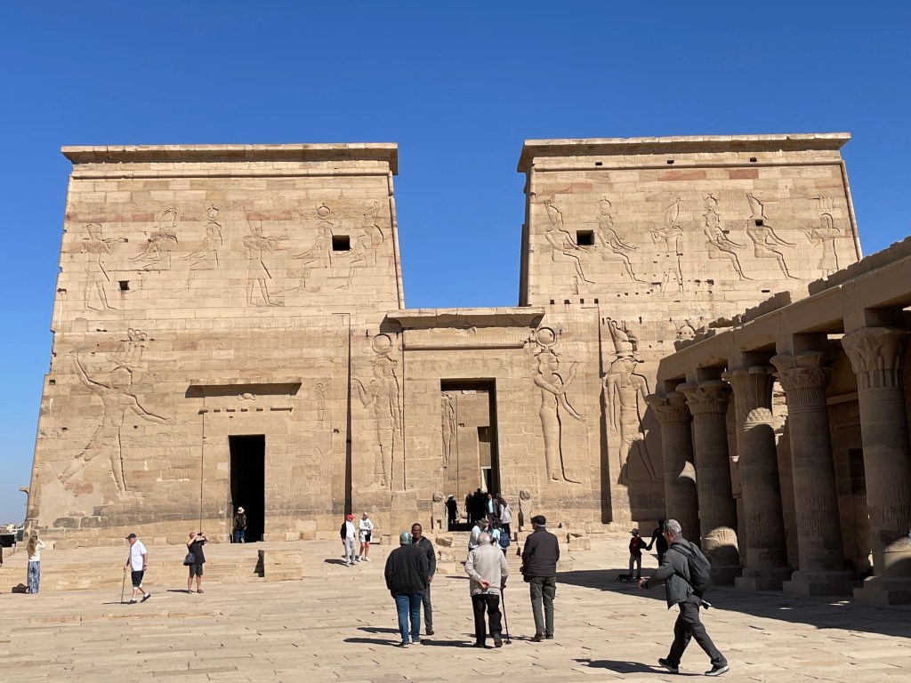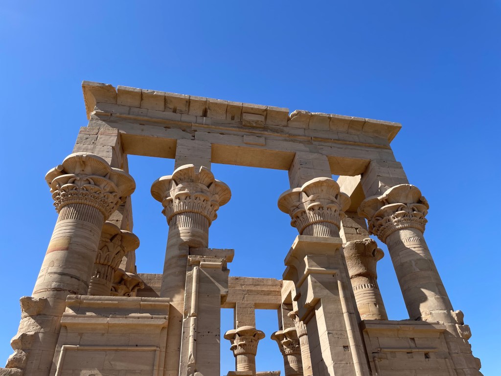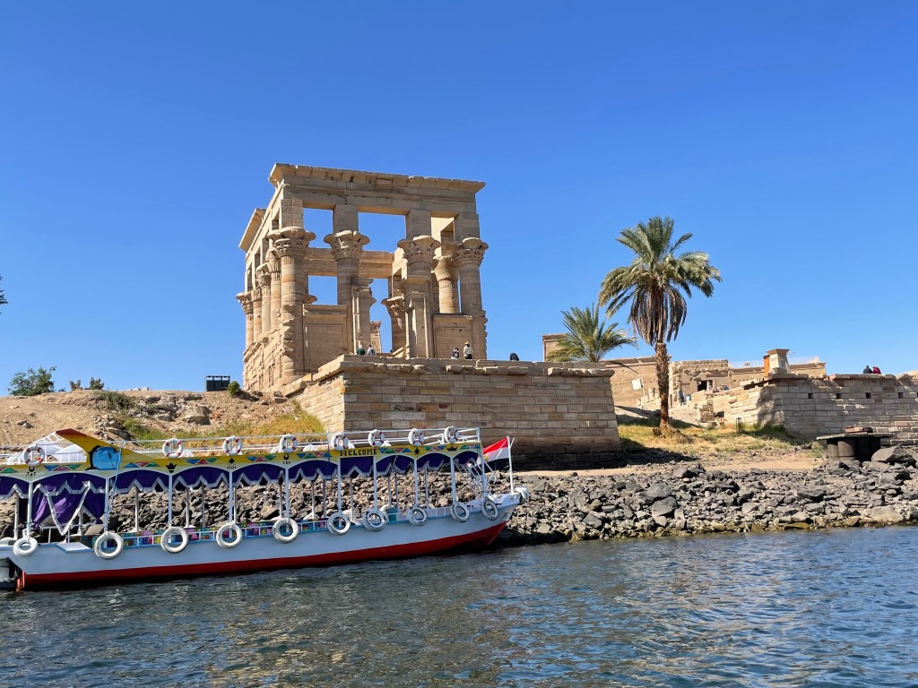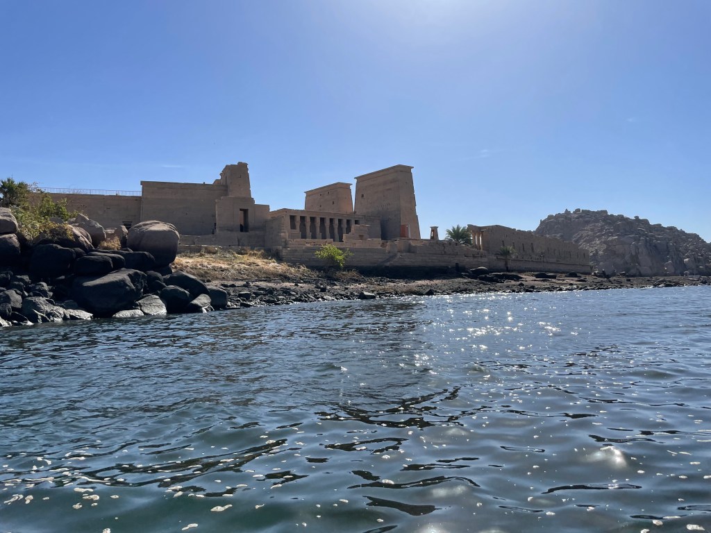After landing in Aswan, we took our bus to where we could board a boat to explore the Isle of Isis. It didn’t hit me that we were actually in a small boat on the Nile until the trip back! The temple was actually moved from an island merely a few meters away, which you can see in this picture.