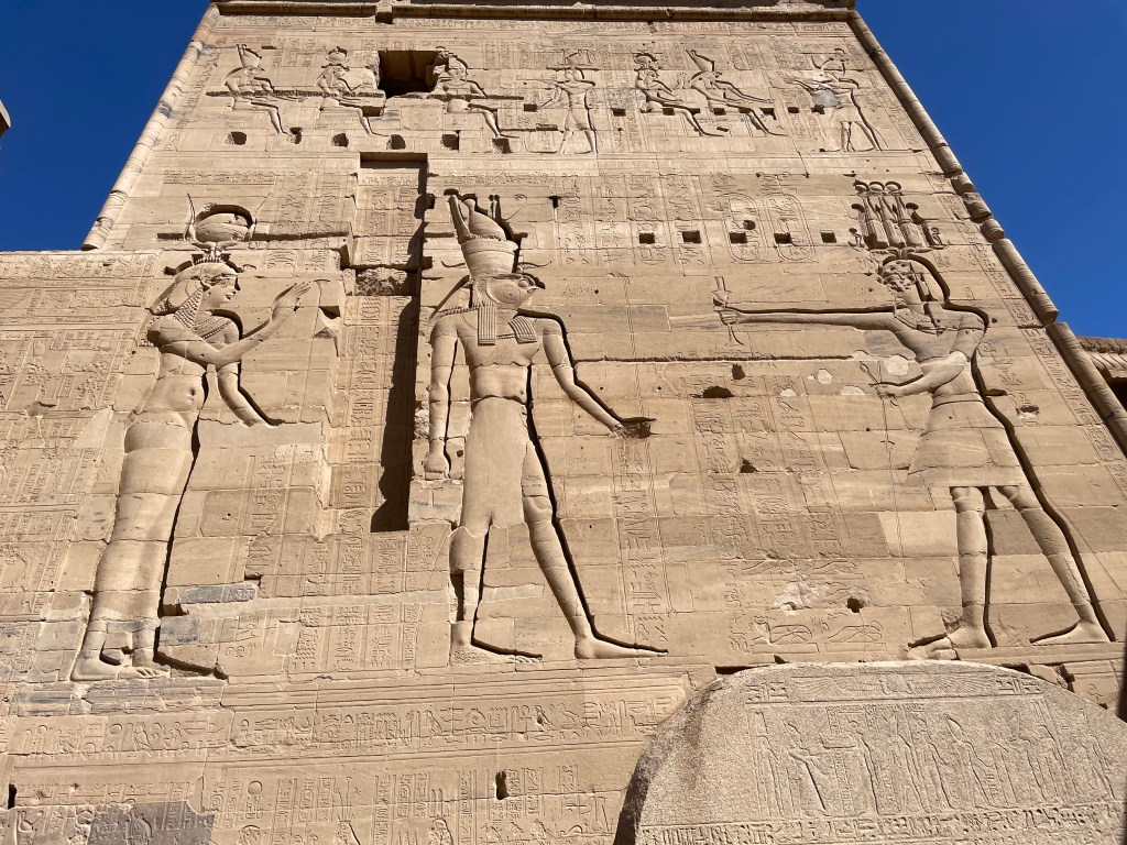 The temple of Isis was reclaimed by Christians and this is why you see many of the gods images chiseled off the walls. They also installed a Christian altar in the temple and carved crosses on the walls. The French army used the temple for target practice and you can see bullet holes in the stones.