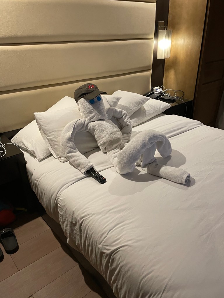 The next morning we finally got to sleep in and enjoy breakfast at 8-9am. After breakfast we had all kinds of free time. We returned to our room to find the best towel creation I have ever seen. The guy was hanging outside to see our reaction and he was so pleased with himself. I loved it.
