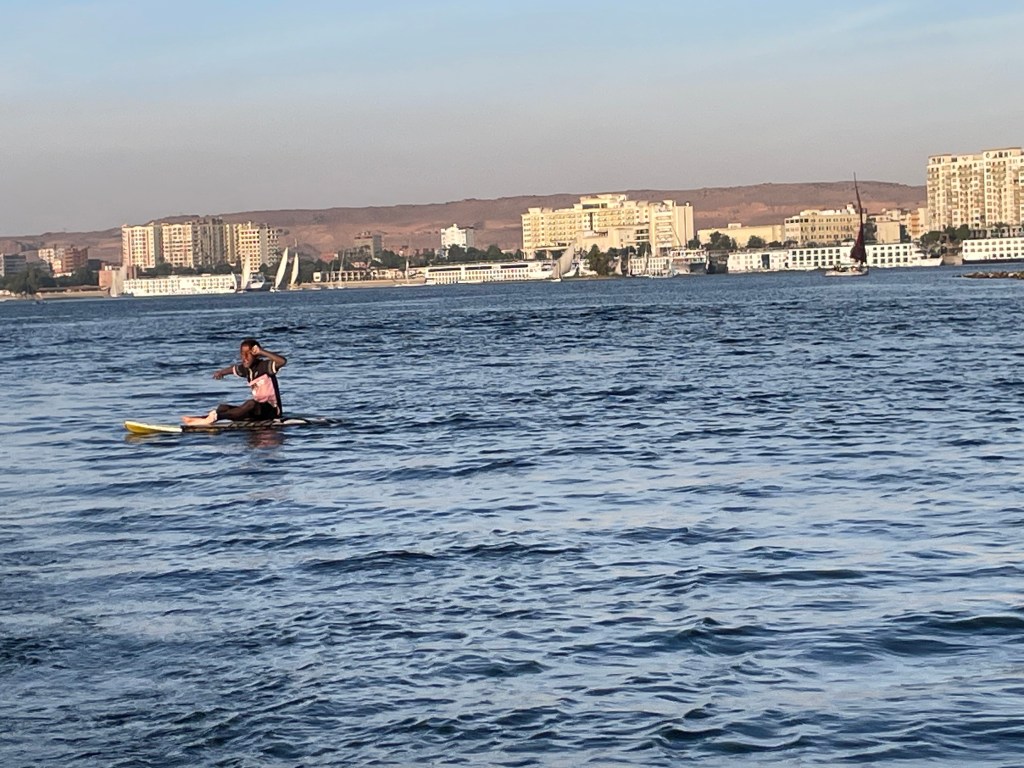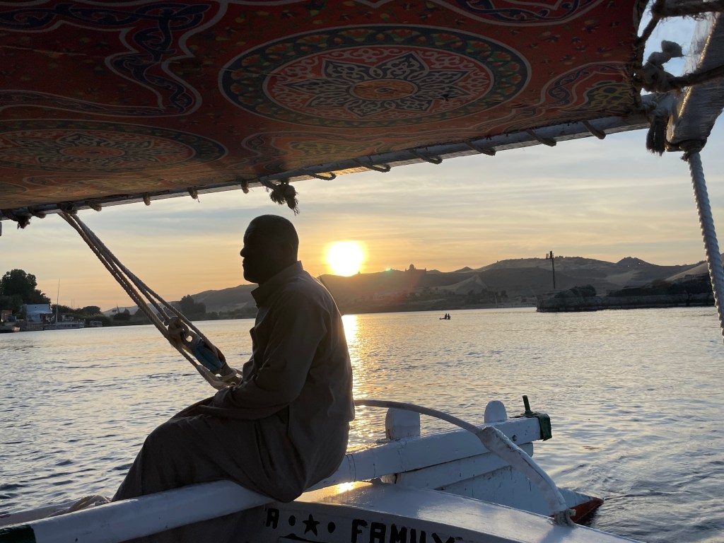 We rested for a bit and then went out for a sunset sail on the Nile in a felucca. It had no motor at all. It was really neat. The ride was very peaceful and relaxing. They gave us sodas or water for free. A boy paddled up to us on a paddle board and sang Guantanamera, Macarena, and Happy Birthday (it was one of our group member’s birthday). We gave him a tip and he paddled off yelling Bye! Bye! Then he yelled/sang happy birthday as he floated away.