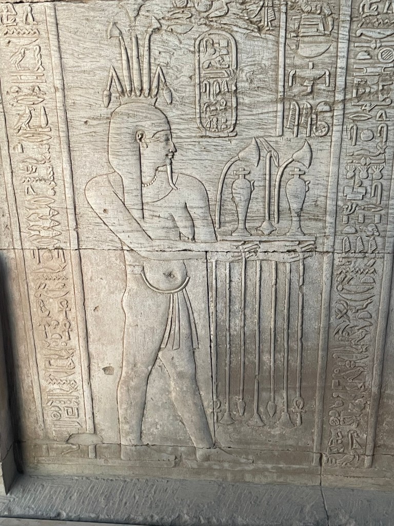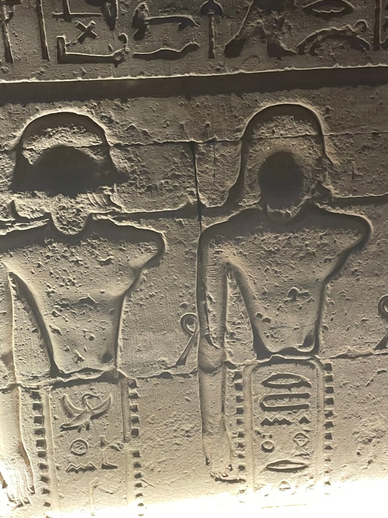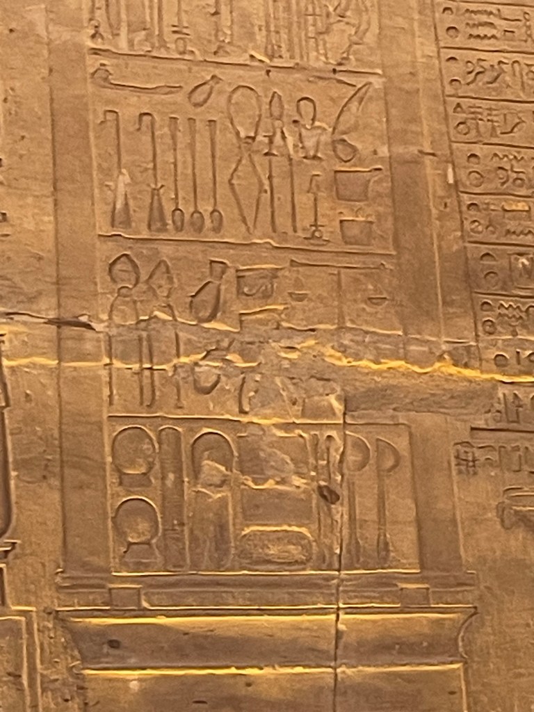 Part of the temple was also a hospital. This is the section of the hospital area. There are hieroglyphics that show the different instruments that they used. I heard other guides telling their groups that some of the scenes near the hospital depicted different ailments. Our guide brought us to a quiet section and showed us the first carving showing a stethoscope.