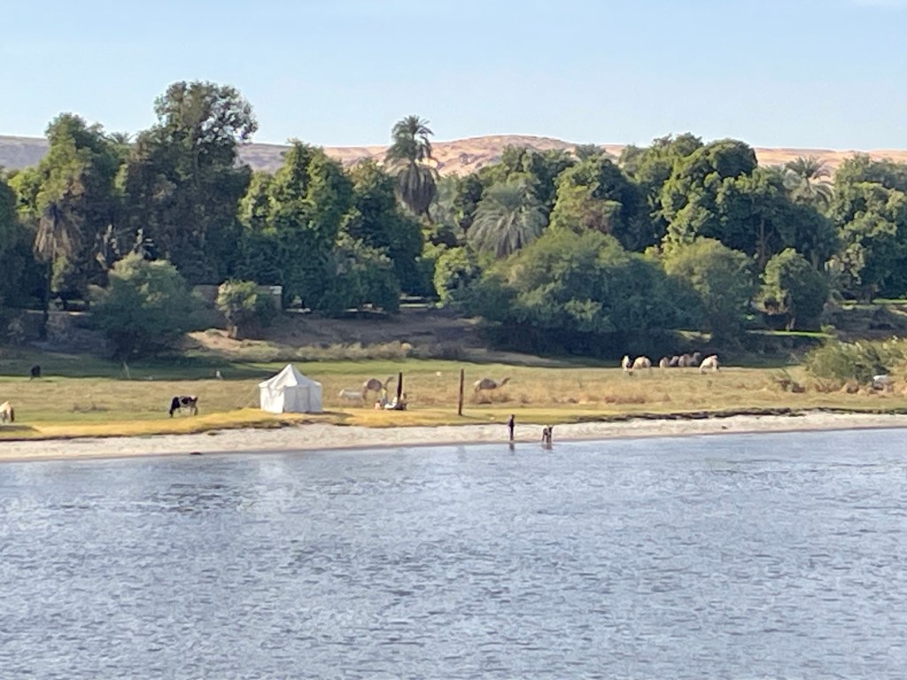 After lunch, we started cruising up the Nile. We went to the top deck to check out the scenery and stayed there until after tea time just chatting with other group members. They had afternoon tea with what looked like donut holes with honey on them. Jef said they were delicious. I had mint tea, which I love.
