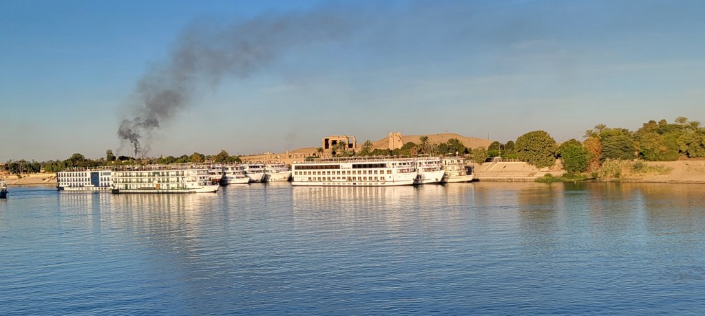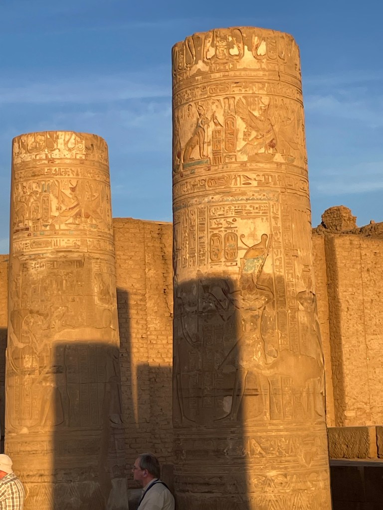 At 4:30 we met our guide in the lobby because we docked at Kom Ombo temple. Our boat was the third one. Two of our groups members were late and Mohamed was not happy. He said we only had 75 minutes to see the temple, we would have to keep up and if we got left behind he explained where the boat was, then told us it might move! We were all rushing to keep up with him, but he is the fastest walker I have ever seen!