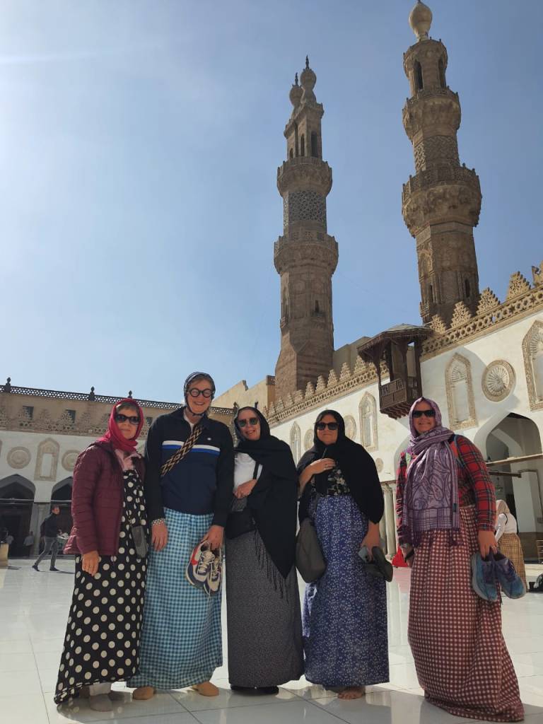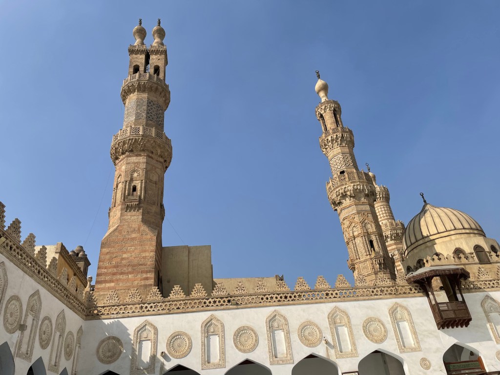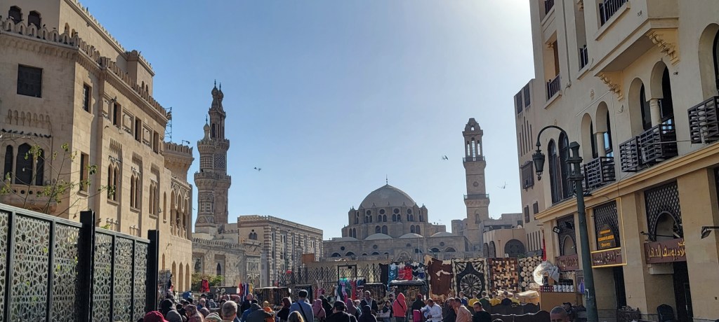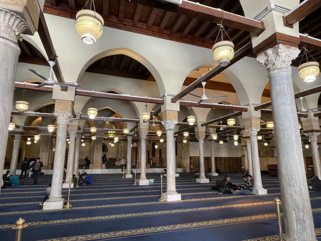 It took quite some time to reach the mosque we were going to visit. Al-Azhar Mosque was built in 972 A.D. It’s the oldest one in the city. I don’t know if I have mentioned the traffic here, but it is unbelievable. It caused me stress just to watch everyone around us. I thought people in the UK drove close to each other! This was much closer. We had to drive at least a mile just to turn around. It was madness. There are so many people walking in the street, motorcycles, vans with open doors (which are actually buses), big buses, and regular cars.