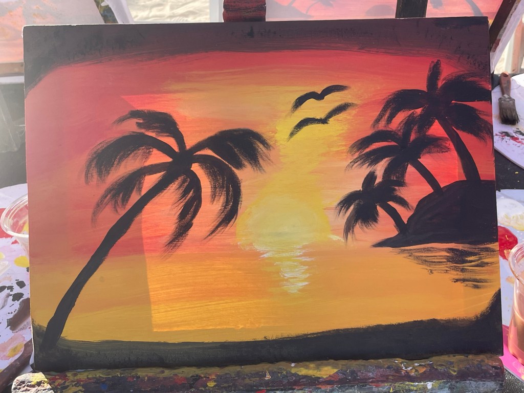 Every day a schedule of events comes out. They have a good number of fitness classes both inside and outside and even in the pool. They also have pickle ball, corn hole, archery, volleyball, ping pong, and other beach games for you to play. One day I wanted to take a sushi making class but it turned out to be private. Instead I went to a painting class. It was fun. They let the canvases dry and gave them to us the next day.