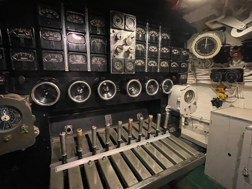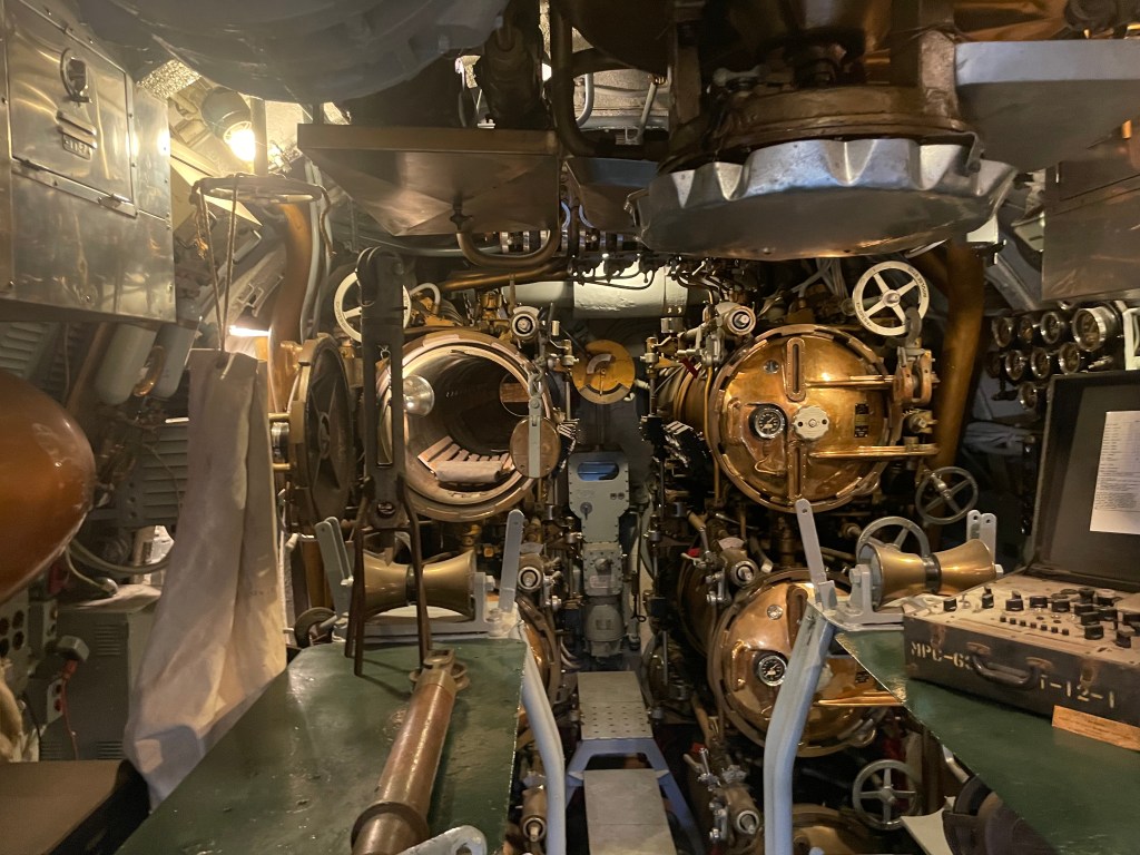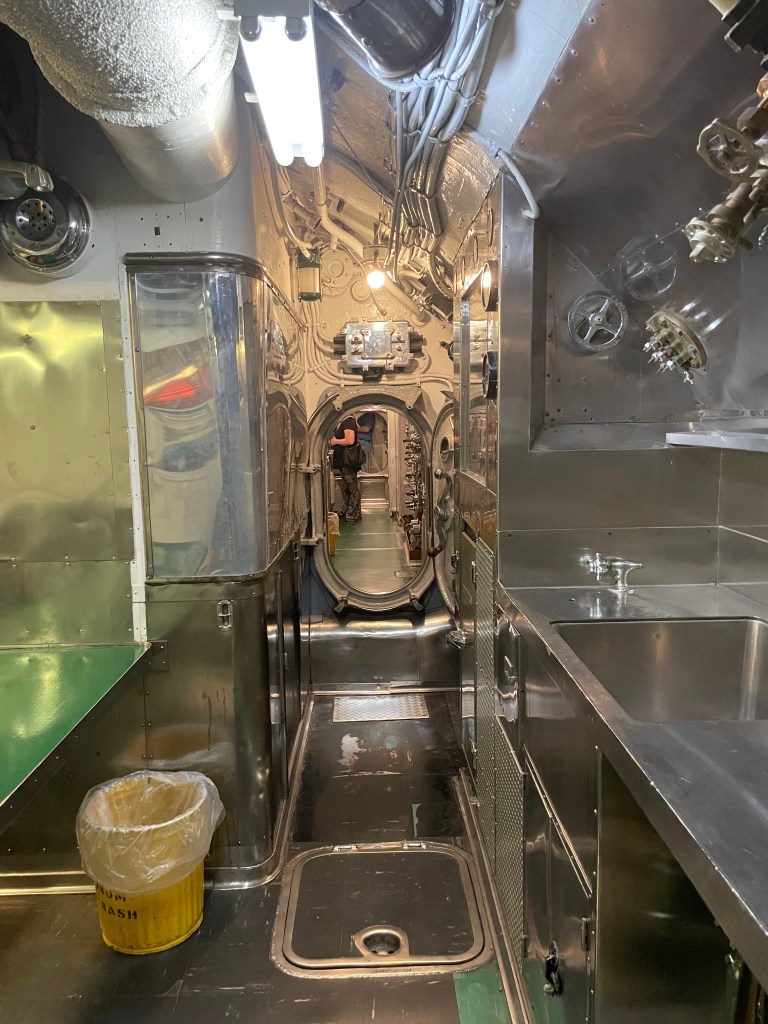 We also explored the submarine. There was a family with five kids ahead of us. The youngest was probably four years old. The second they got down into the sub he looked at his mom and said, can we go back up now? He was not into being inside that submarine AT ALL. This sub could hold 65 men. It was tough getting through the hatches. I couldn’t imagine living in a space like that.