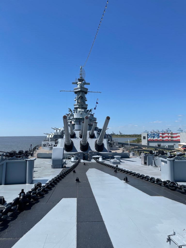I have been on several battleships, but this one was the coolest. Why? You can go almost everywhere inside. It housed 2500 people and you can see that it is its own city on a ship. The other cool thing about the park is that you not only get to explore the U.S.S. Alabama, but you can go inside a submarine, wander outside and look at various aircrafts and military vehicles or walk around inside and look at various aircrafts and military vehicles. There is also a gift shop and a place to eat. My husband was not lying when he told me that it would take up a good part of our day to explore.