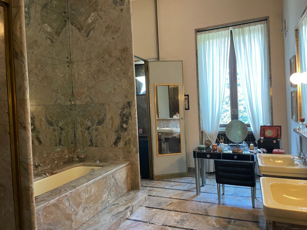 Villa Necchi Chesecchi was on a side street a little tucked away. The gardens there are free and they have a cafeteria that was quite busy. You have to pay about 10 euros to enter the villa itself. There were not many people exploring the villa or the gardens. The Necchi family is probably most well known for the old black enameled sewing machines. The house itself was also featured in a few movies, most recently The House of Gucci. It was built in the 1930s and I felt like it was a really home (not like other houses we have toured that seem more like museums). There is a lot of notable artwork including drawings by Picasso and Matisse, but they were donated later and not owned by the family.