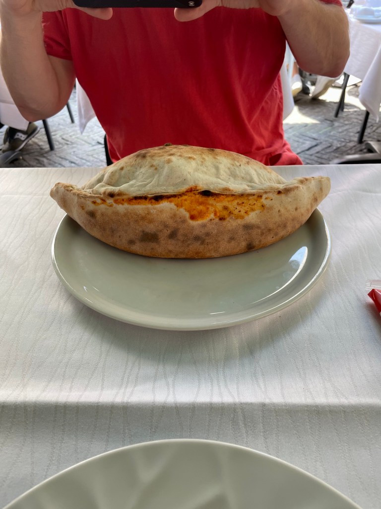 We ate lunch outside in a piazza. My husband’s calzone reminded me of Napoleon’s tri cornered hat. It was a delicious meal.