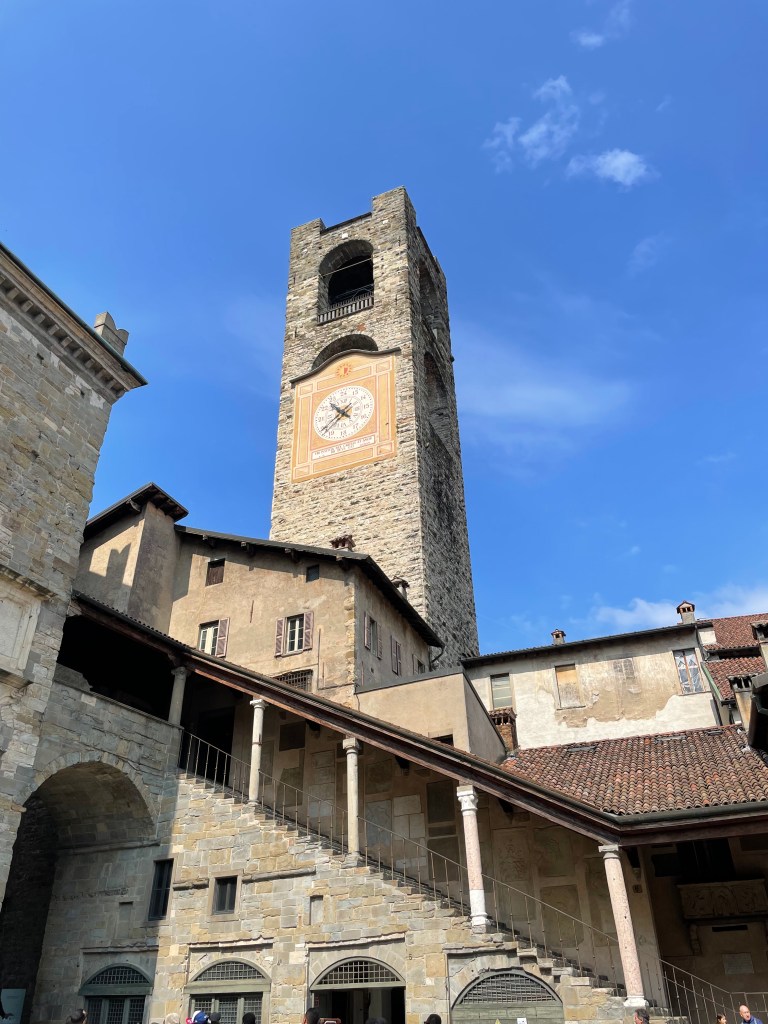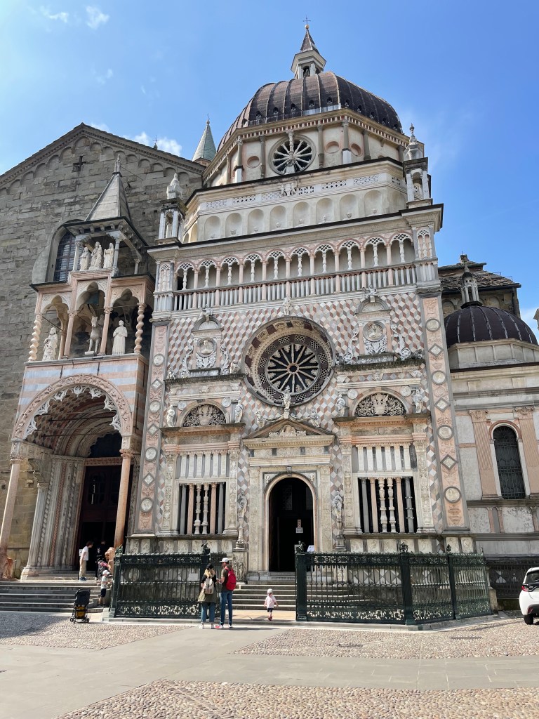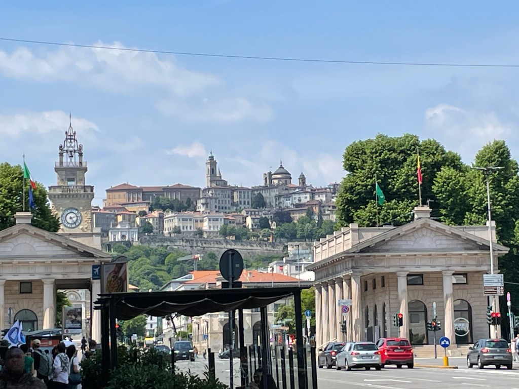 We wanted to get out of Milan on Saturday, so we took a train to Bergamo, which only cost around 12 euros round trip each person. It was less than an hour to get there and when we arrived, we took the 1 bus up to Citta Alta (Upper Town), which is the old called city area. You can take a funicular, but the line was quite long and the bus takes you higher up. It is a UNESCO World Heritage Site. The bus enters the Upper Town through a walled entrance that it can barely fit through. I can’t imagine driving through that every day.