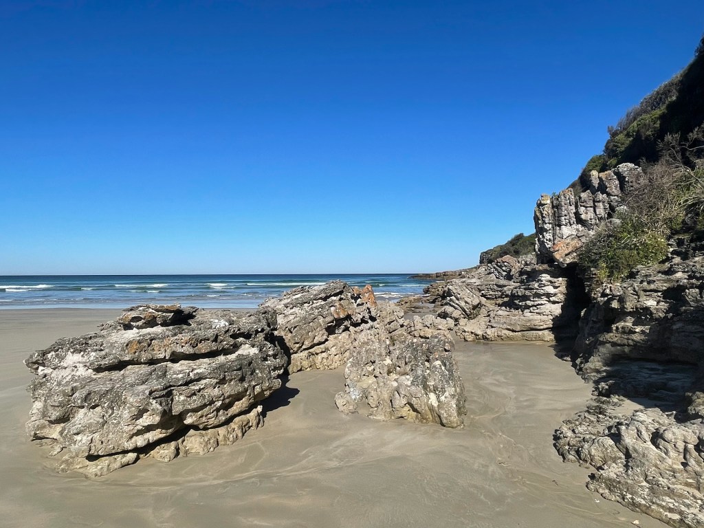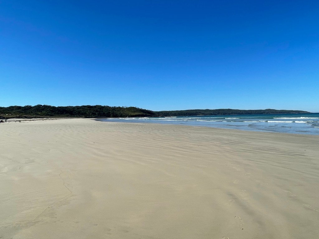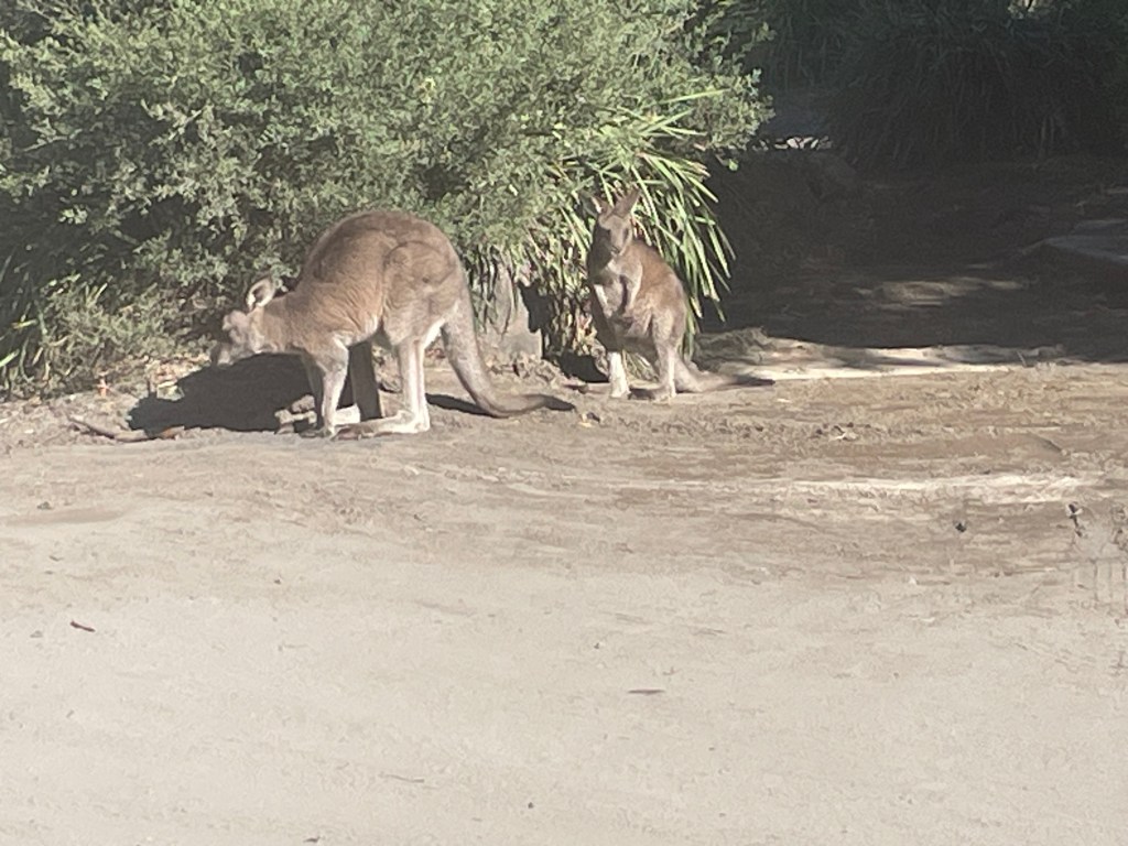 Booderee had all kinds of hiking trails and beaches. We arrived in the parking lot to find three kangaroos, including a mom and child. We hiked down to the Cave Beach. My husband was hoping to see kangaroos on the beach, but we didn’t. The beach was massive. When we returned to the parking lot, the mother kangaroo was feeding the joey. There were also some people feeding the kangaroos even though there are tons of signs telling you not to do so.