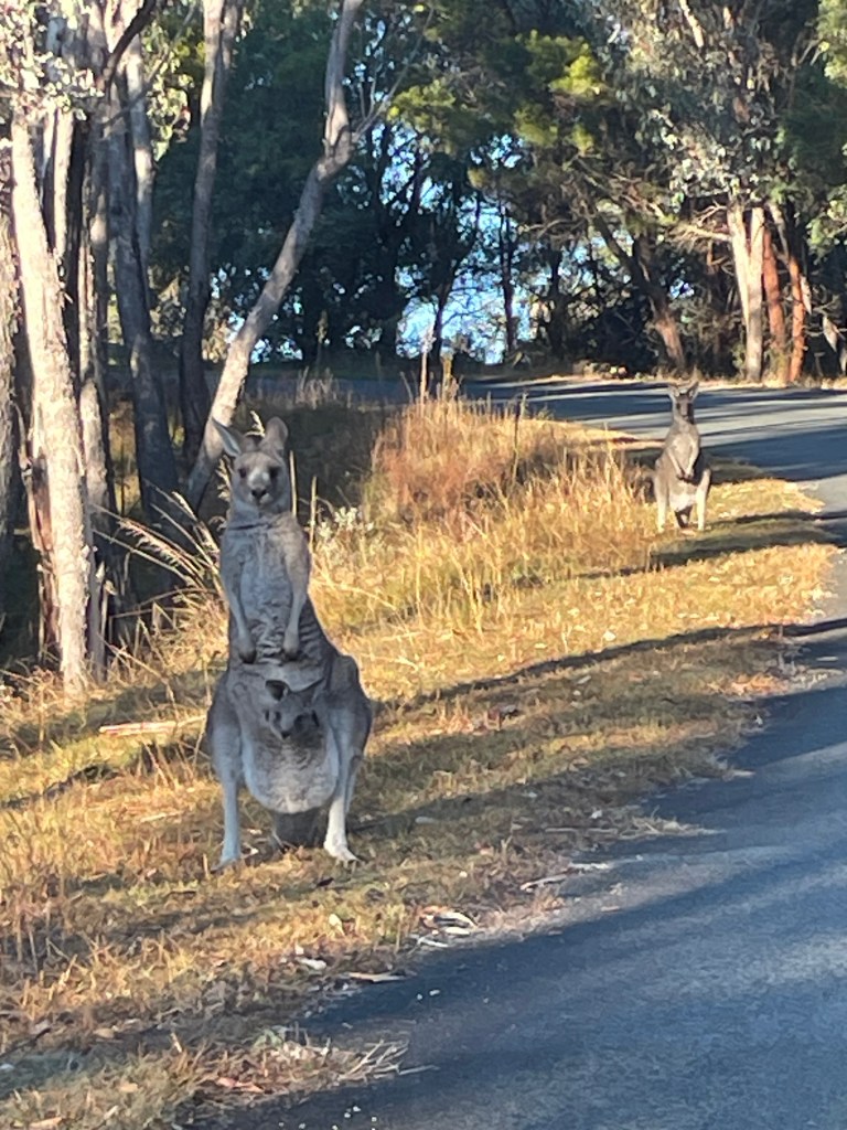 We crashed early that night, so early that we skipped dinner. I wish we worked harder to stay awake. If you think you can just take a nap, think again! We woke up very early the next morning and decided we should just get moving as the sun rose. Our destination was Tidbinbilla Nature Reserve. The day started off very foggy, but it lifted before we arrived and we were able to see fields filled with kangaroos! When we started driving through the Nature Reserve, there were kangaroos all around us. We were so lucky to see a mom with her joey right next to our car!