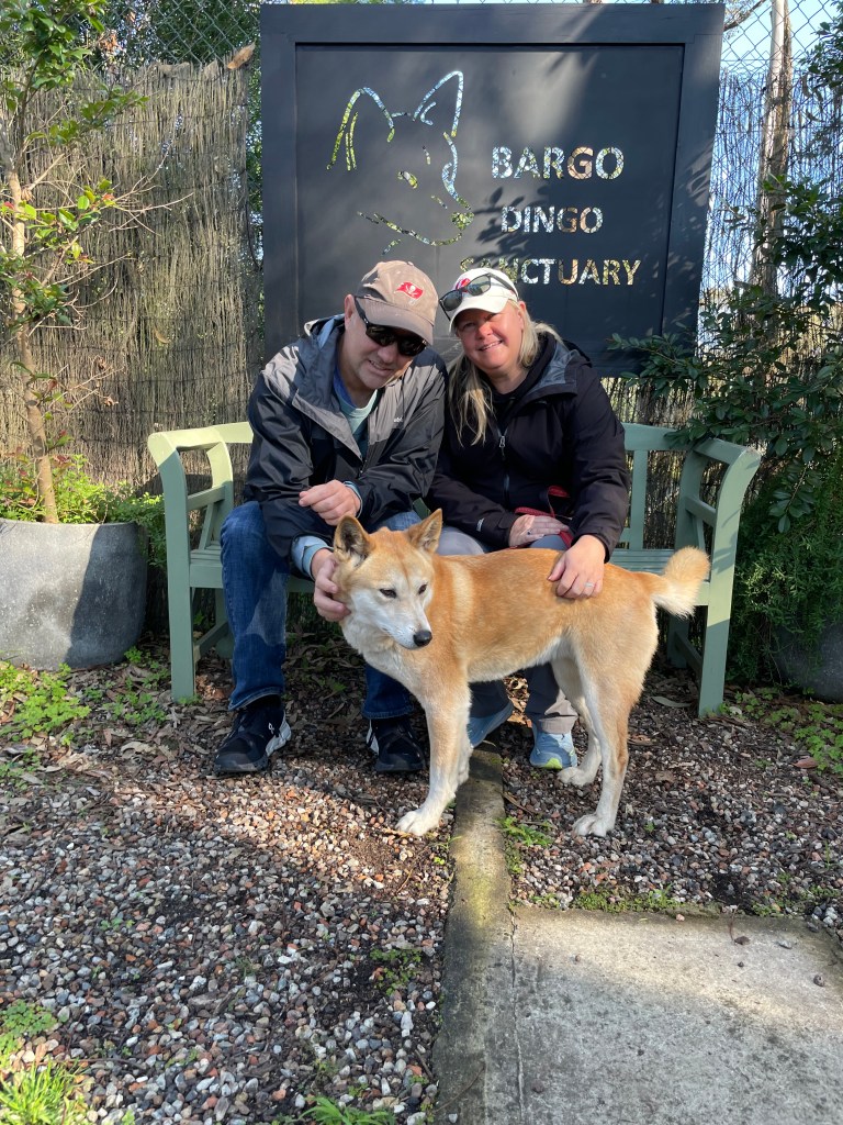 We were met by a volunteer who has worked there for 12 years and of course I can’t remember his name. You could tell that every dingo in the sanctuary was important to him. He had another volunteer join us as he told us about each dingo and their mate. She also demonstrated her knowledge and love for each dingo. They were all well cared for and many eagerly came up to the fence to be greeted. If you put your hand near the fence, they would sniff and lick you. (We did this with permission.).