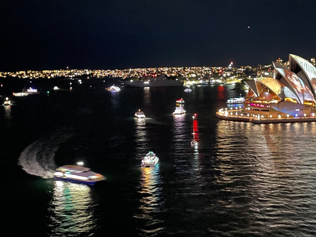 We continued our walk around that edge of Circular Quay from above. It kept us away from the swarms of people and we had great views of the light shows. It was a lovely walk.