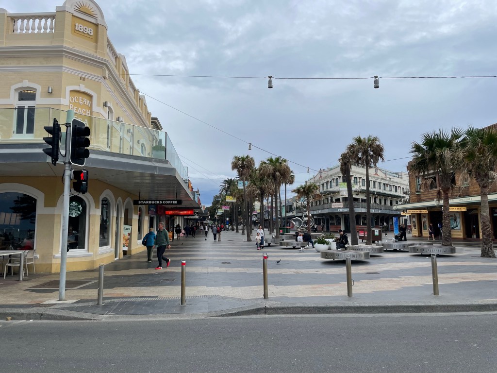 We all walked over to Darling Harbour. I need to note here that wherever we walked in Sydney, no matter the time of day, we were passed by joggers. It was unreal the number of people that jogged by us while we visited. We were going to visit the Maritime Museum, but the ship that we wanted to see was not on display. It’s the ship where my two friends met, which was pretty cool. I was sad that I didn’t get to see it. We took the ferry to Manly Bay. The ferries are very quick and inexpensive. It was a nice way to get views of Sydney Harbour.