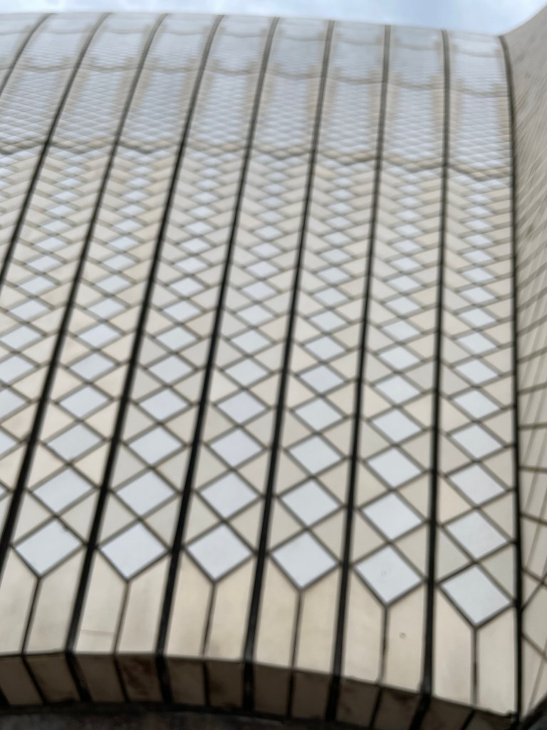 We woke up the next day and met up with my friend and her partner early and walked over to the Sydney Opera House to see it up close. There were hardly any people out at that time, so we got some great pictures. We were amazed that the roof was actually made of tile. The tile seemed liked the same that you would put in your bathroom. We all went over and touched it.