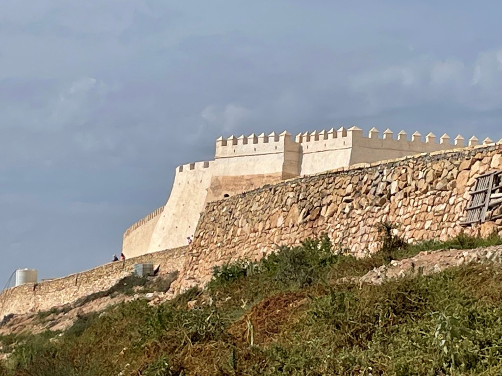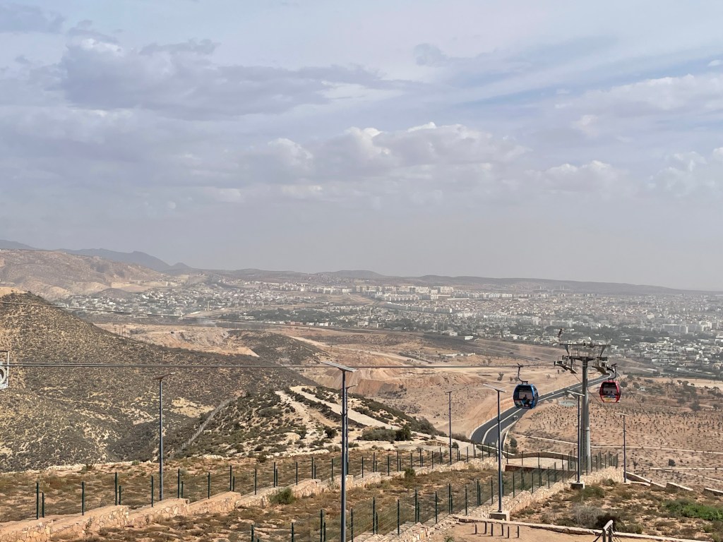 There were a lot of tour buses leaving for the same itinerary as our tour, but we didn’t really see too many people throughout the day, which was nice. Our tour bus was quite old and I was nervous about the microphone situation, but he fixed the feedback pretty quickly. It had good air conditioning so I was happy. We drove up the mountain to the Old City. There is no one living there now though due to an earthquake that occurred in 1960 and killed over 5,000 people. They moved the town down the mountain by the water. The views at the top were spectacular. You could see the entire Sous River Valley and the Anti-Atlas mountains in the distance. There were also camels that you could pay to ride and there were men with baby goats trying to get you to pet them.