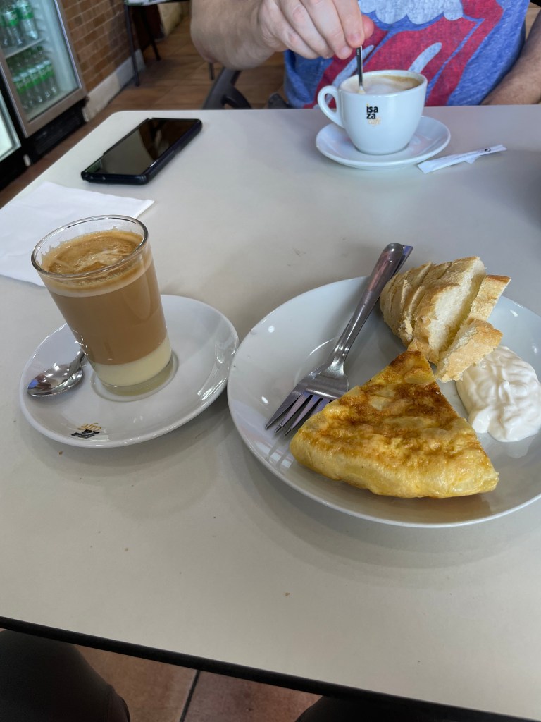 It was lunch time and I was craving some tortilla española and coffee. They had a coffee on the menu called leche y leche and it was coffee with condensed milk and hot milk. When I lived in Spain with a family, I have fond memories of drinking coffee and putting condensed milk in it with my madre. It is delicious.