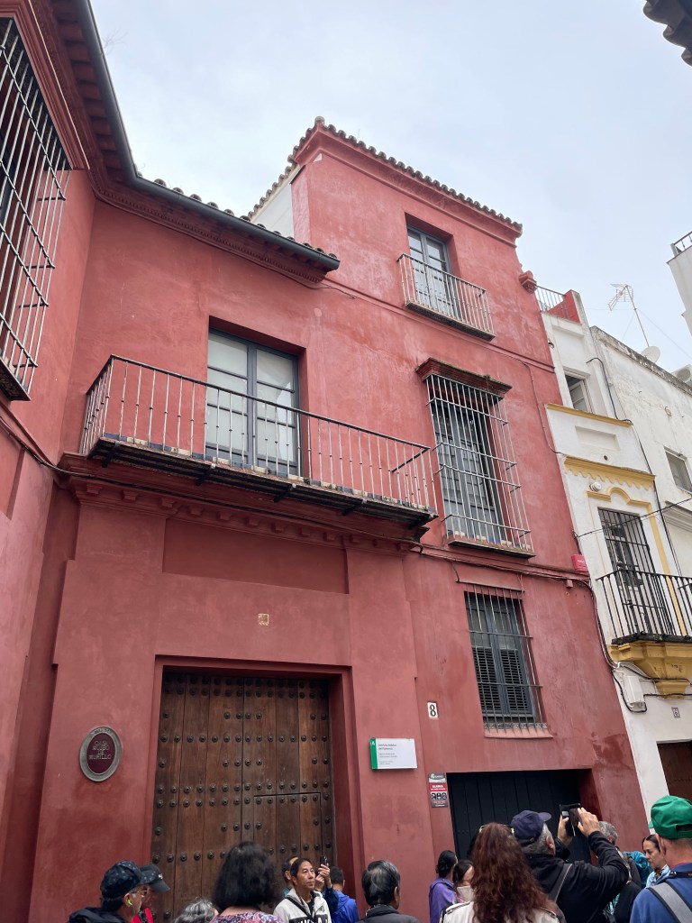 We returned to the bus and drove by quite a view buildings from the 1929 World Exposition. These buildings are all used for different things now, but you can still see the name of the country it represented on the front including some artwork that clues you into the country as well. We were dropped off at the Old Jewish Quarter. It started with some gardens that were gated. The roads were very narrow. We passed by the childhood home of the artist Murillo.