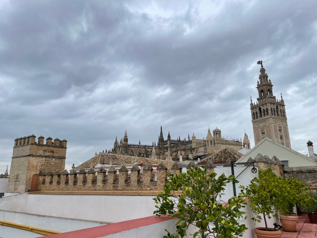 After leaving the Alcazar, we were given an hour of free time. Since this was our last day in Spain, I had to get my tortilla española, which they call tortilla de patatas in Andalucía. We also made sure to climb to the roof of that building to get pictures of the Cathedral. It was well worth it.