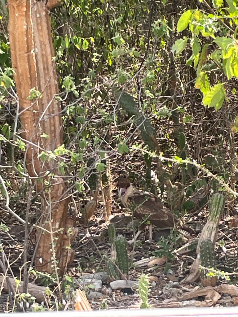 We headed to the area that had more flamingos and on the way, we saw two Crested Caracara birds. I think the one I have a picture of was a juvenile. It kept screeching and we saw another fly over to it and then away. We think the other one was mom.