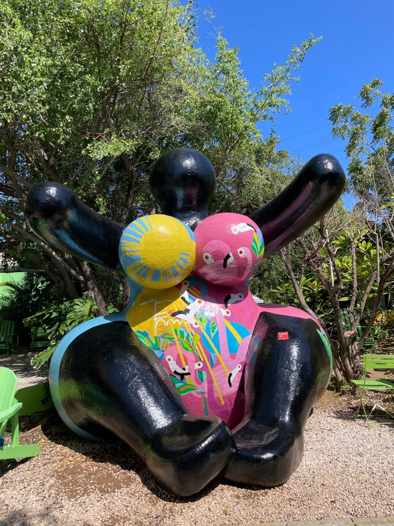 Around the corner is the workshop/factory for the Chichis. They are seen all over the island painted with different decorative dresses. Chichi means big sister. It was developed by a German sculptor who lives on the island. It’s a pretty impressive story. The molds of the Chichis are made here and then the artists take them home to paint them. I was lucky to see a couple of artists at work right there. Every Chichi is unique and hand painted. They are pretty expensive though even for a small one. I opted to buy a magnet. ($10) I really liked it because it had a flamingo on its dress.