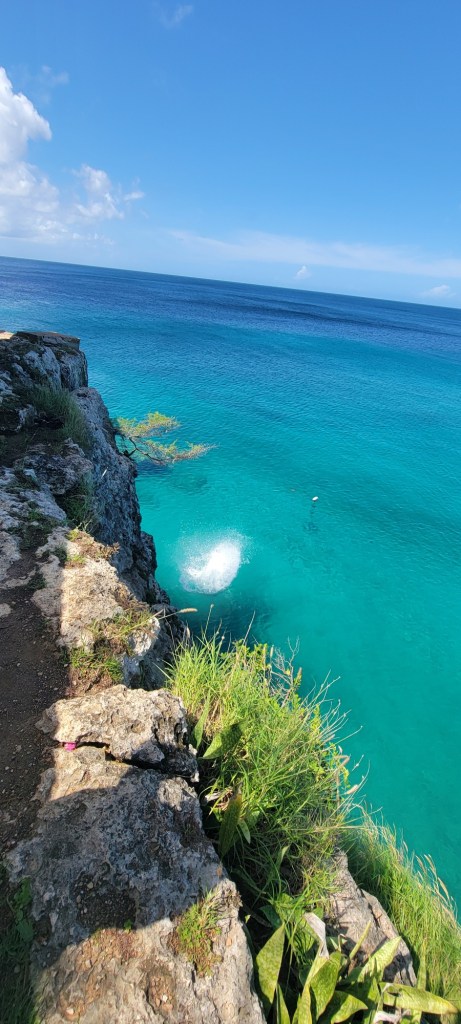 We drove to the north side of the island. My husband tried to get us to see a blow hole, but we couldn’t figure out how to get there (there was no trail or anything). Instead we stopped at this beach/restaurant. They had a spot where you could jump off the cliff into the water. We waited to watch a woman do it. It was about 20-25 feet into the beautiful clear water.