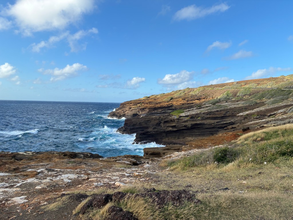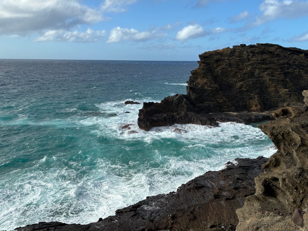 We continued to drive along the Kalaniana Highway, stopping at various view points to take pictures. It was a perfect day for it. Some places were mobbed with tour buses and cars and others were shockingly empty. Lana’i Lookout was pretty empty, but the Halona Blowhole Lookout had a ton of buses. We also stopped at some random beaches just to get a picture of an island or the sand line.