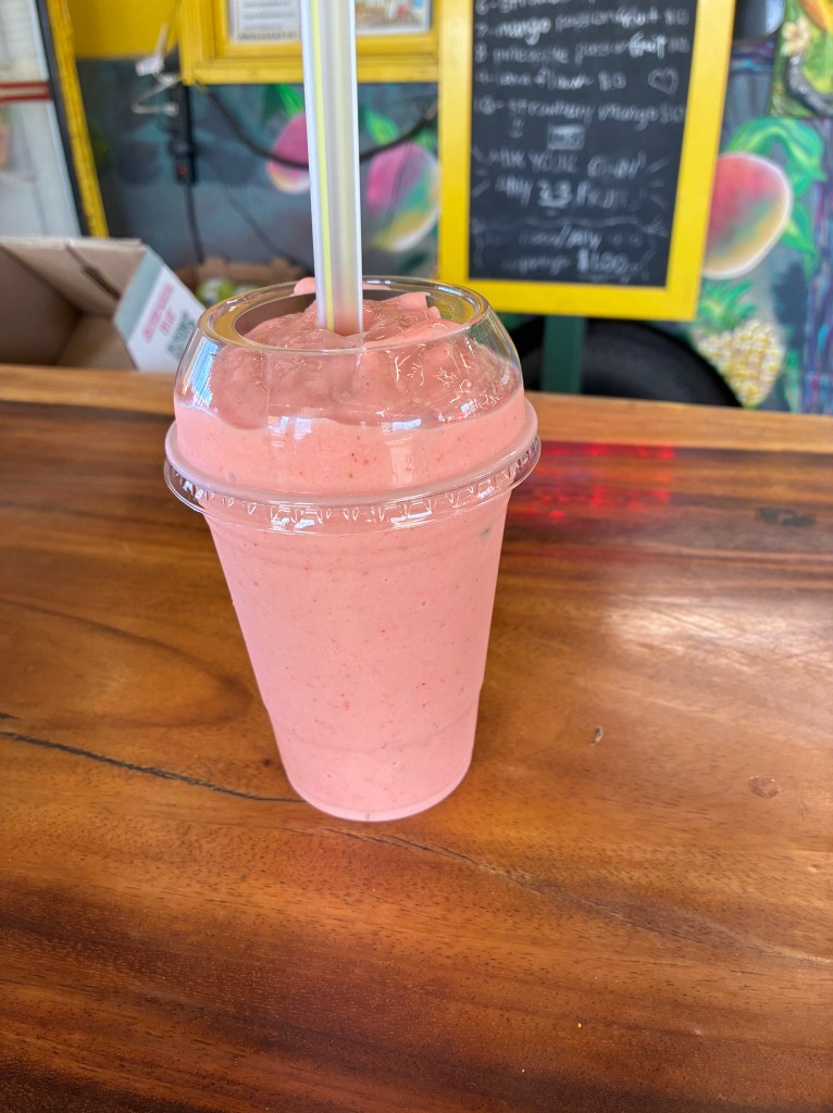 I really wanted a fruit smoothie so we stopped at this old sugar mill that has all these different food trucks. We ordered a strawberry mango smoothie, but when we got it it tasted like banana to me. I wanted to make sure I was not crazy, so I went and asked and she said she made a mistake and asked if I wanted to make the strawberry mango. I said yes. It was so much better, but luckily my husband liked the banana one, so we each got our own.