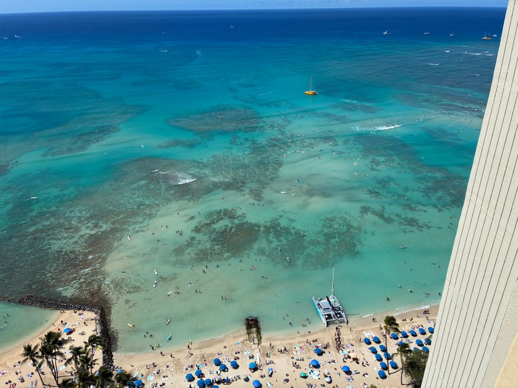 I’m not sure if I recommend staying on Waikiki Beach. The parking garage was not fun and it was very busy. We only spent time on the beach to watch the sunset, but I did love watching people on the water from my hotel balcony. It was very easy to walk to shopping and to places to eat. I guess the parking, traffic, and million people were the only downsides to staying there. It all depends on what you are looking to do. The beach was literally across the street, so if that is your goal, definitely stay there!