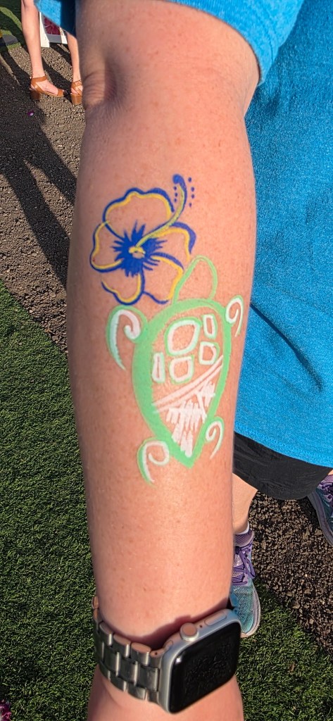 We stood in a short line to get a tattoo. They did it with tattoo markers. Some tattoos I saw were pretty amazing. Mine was basic because the woman was new at doing them. I liked it. It lasted two days after the luau. I would never put a real tattoo on my forearm. It was too much.