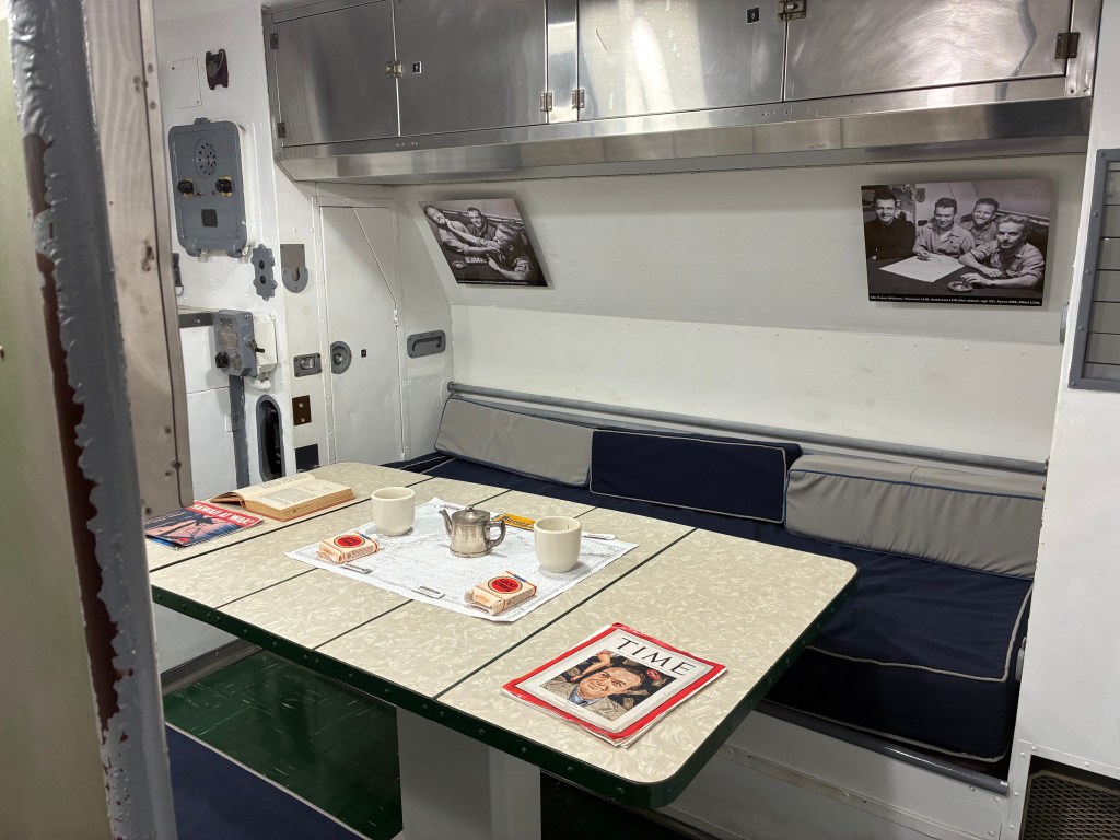 The next compartment is the officers’ area. There are bunk areas, a table to eat or play games, and an office area. It is also called the forward battery room because below deck are 126 lead batteries, which powers everything on the sub.
