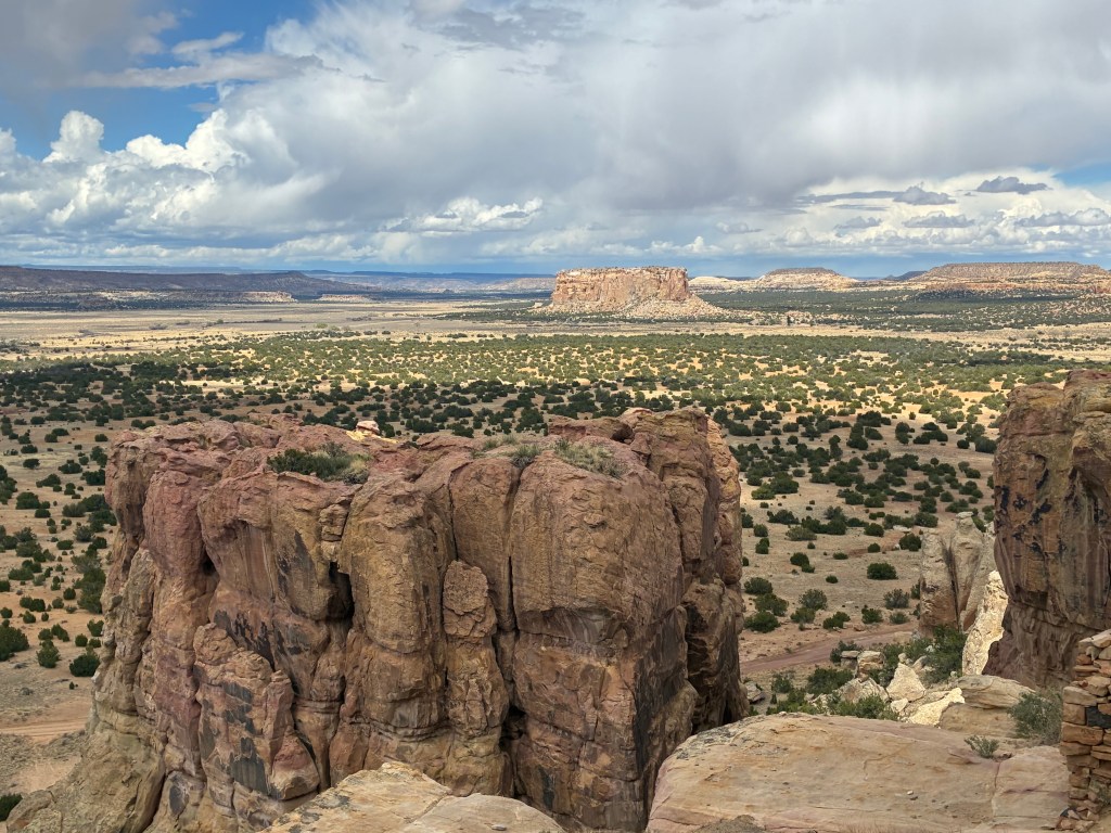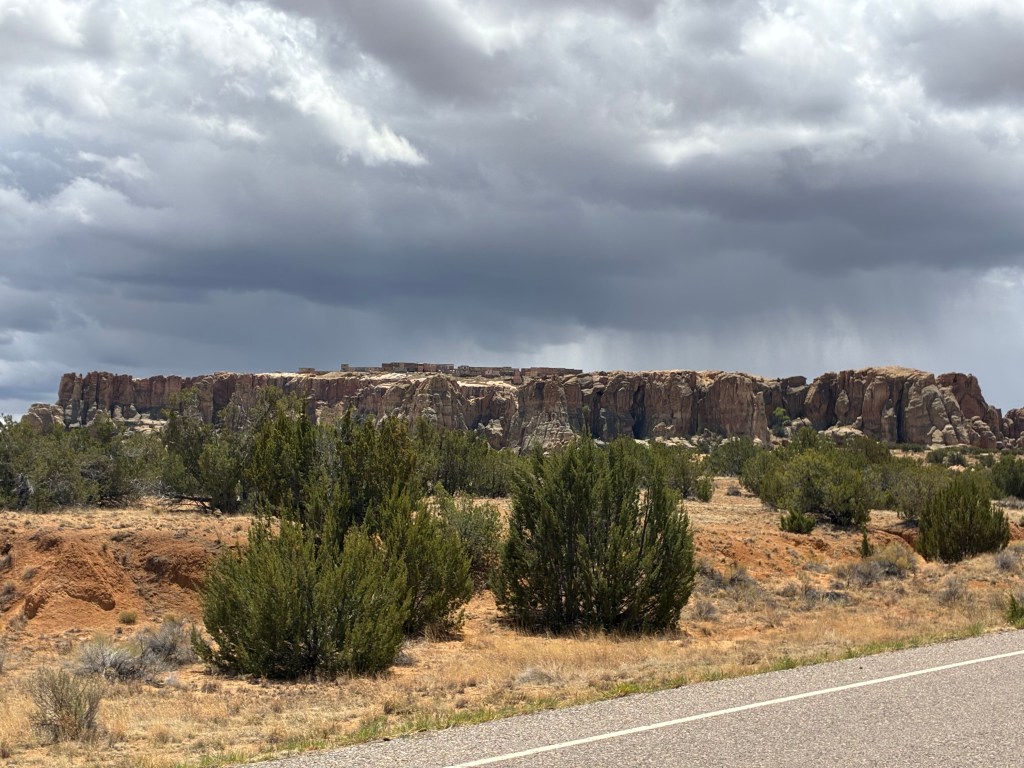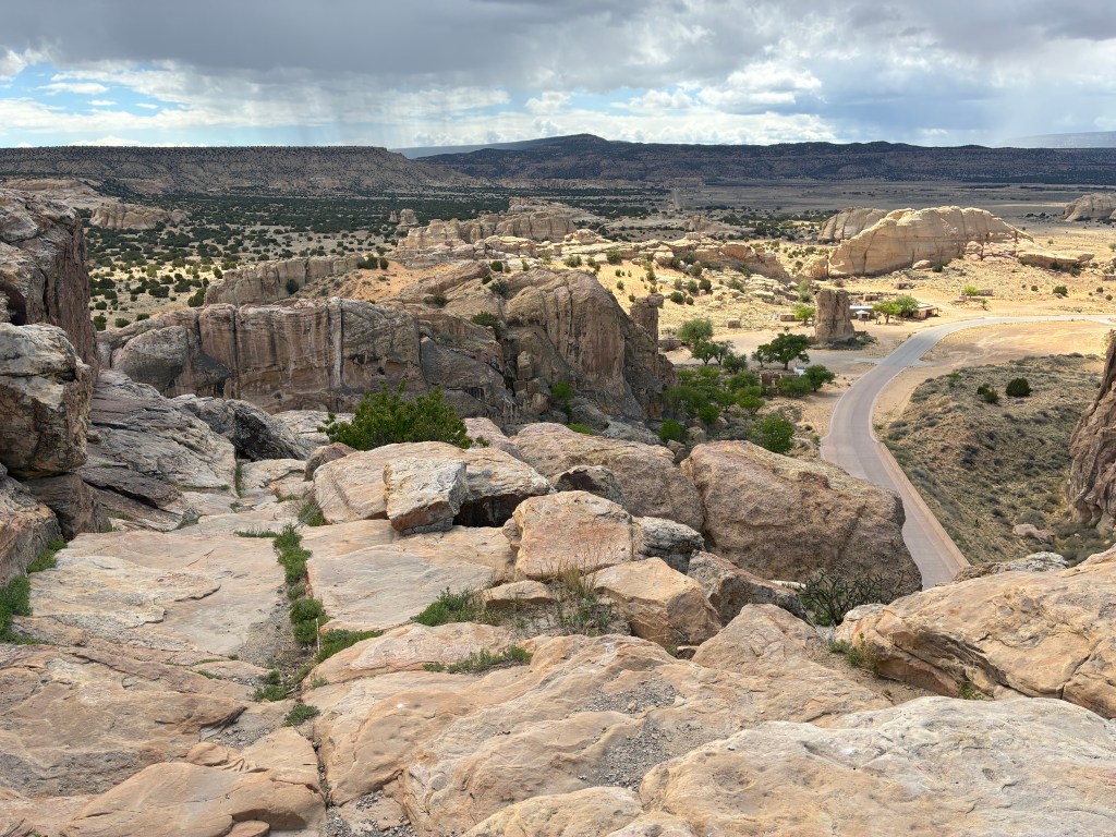 We were given the option to climb down the mesa and walk back to the visitor’s center. The other couple on our tour opted to do just that. The guide pointed out the “steps” to take down and said it would only take 5-10 minutes, but the walk back to the visitor’s center would take longer. My husband was interested in climbing down, but not the walk back to the center. It was quite warm and there were thunderstorms near us.