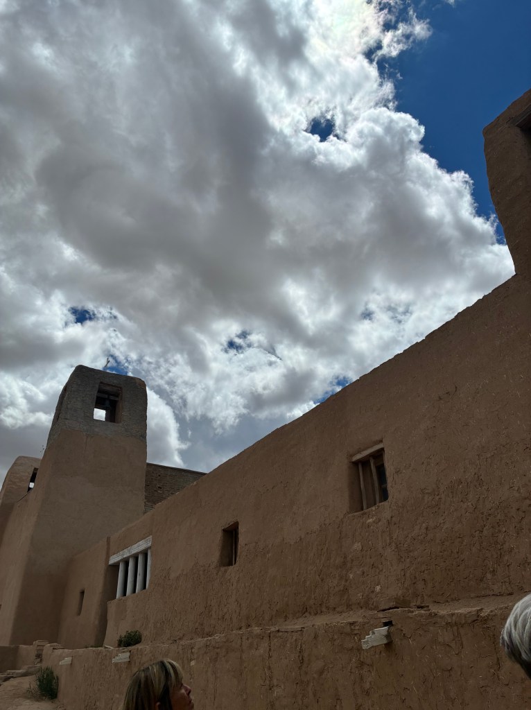 As you get closer to the pueblo, you can see Enchanted Mesa. It is very impressive. Our tour guide told us that it was the first choice of her people to inhabit, but a severe thunderstorm trapped people on top and below the mesa. Those who were left settled on the site of the Acoma Pueblo now.