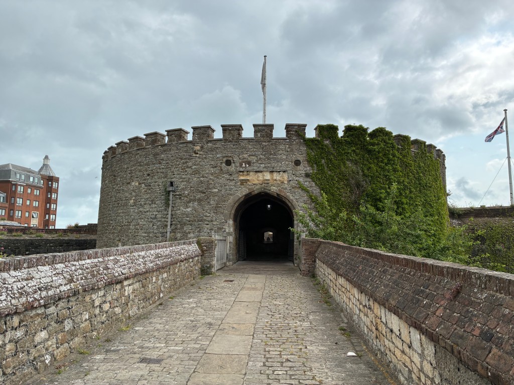 We took a train to deal from Dover. It only took about fifteen minutes for the ride. After arriving in Deal, we stopped at a bakery for my husband to get a delicious donut. Everything looked lovely, but I was not hungry. I believe the shop was called Albert’s. It was on the main pedestrian street. There were quite a few people out and about on a Friday morning. It was quite windy. We walked to the castle from there.