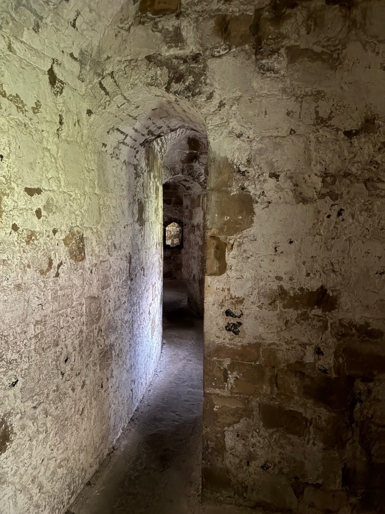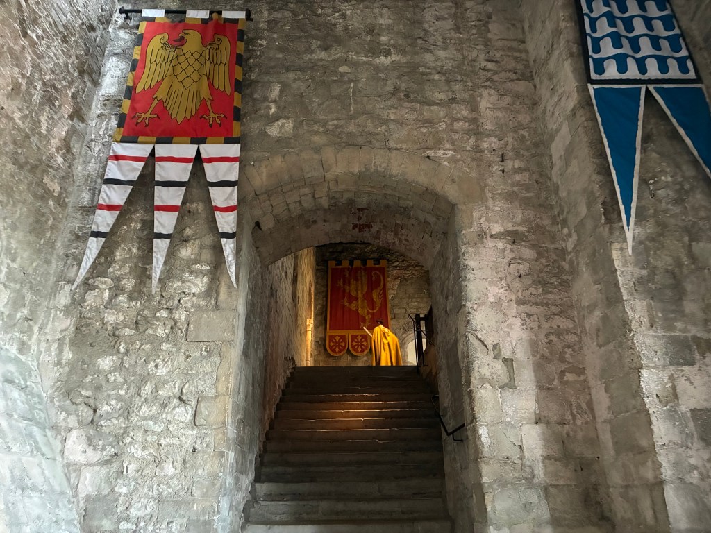 There was also an area under the castle that had a tunnel with openings to fight anyone in the moat area. Even though it went all 360 around the castle, we only explored half. The other half had a sign that said flooding. It was quite dark and I didn’t want to get my feet wet.
