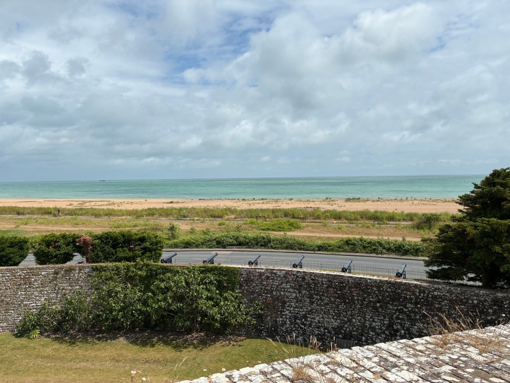 Much like the castle in Guernsey, this was more like a fortress to me. It was different from other castles I have visited in that it was all round. We walked around the outside battlement areas first and then went inside and upstairs. There were several rooms up there where the soldiers and keeper of the castle slept. There was one original wall that they preserved.