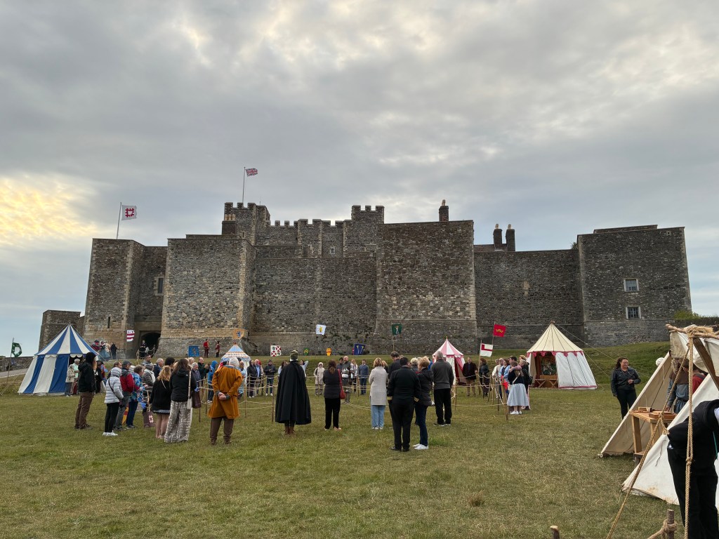 Azamara Cruises has a special night on their cruises that is called Azamazing Night. Ours was an evening at Dover Castle. We were taken by shuttle up to the castle and they had a medieval camp set up outside the entrance. There were different tents set up with people making coins, jewelry, games, and weaving. In the middle they had knights fighting. There was also a minstrel band playing as you entered the castle area.