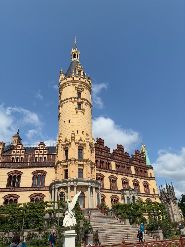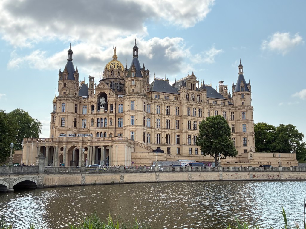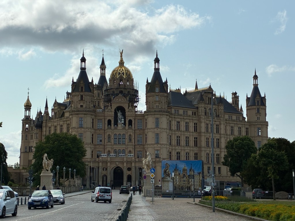 After spending the day relaxing and cruising the Kei Canal, we were ready for another adventure on land. On our quest to see as many castles as possible, we traveled by train to Schwerin Castle. We planned to return by bus, but the clerk at the train station said we would need to pay the driver in cash and we had none. So we decided to still get a one way ticket and figure out the schedule when we were done touring the castle. I believe the tickets were 24 euros for both of us.