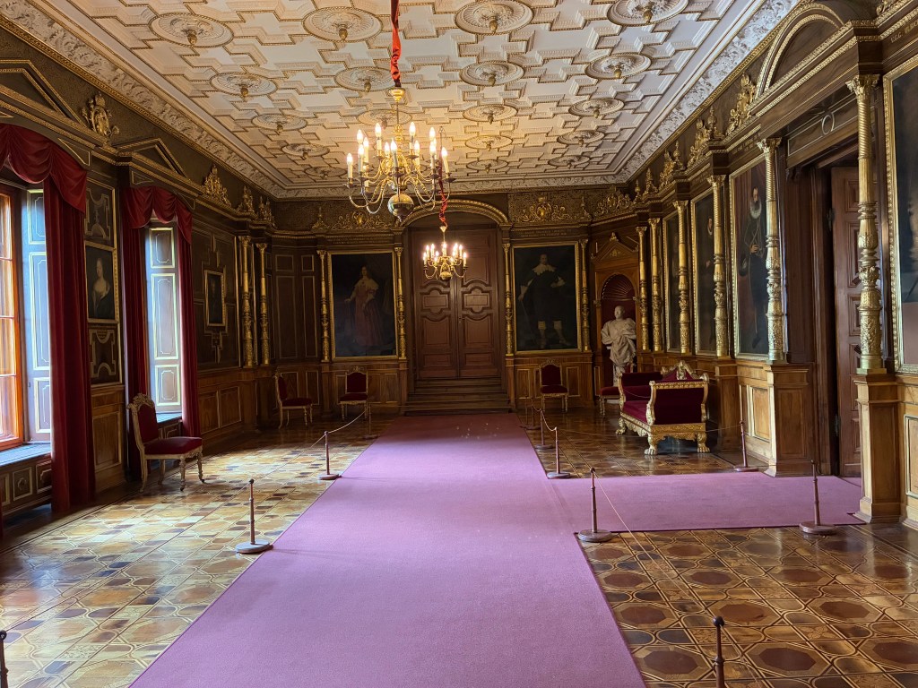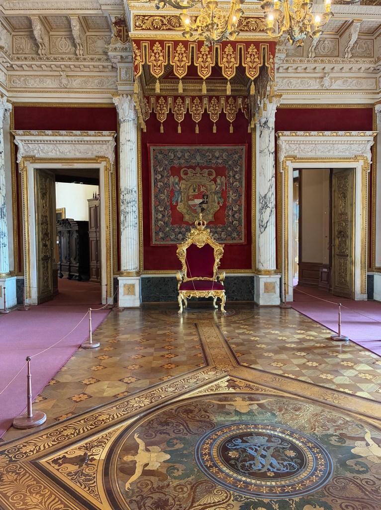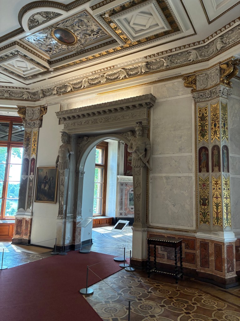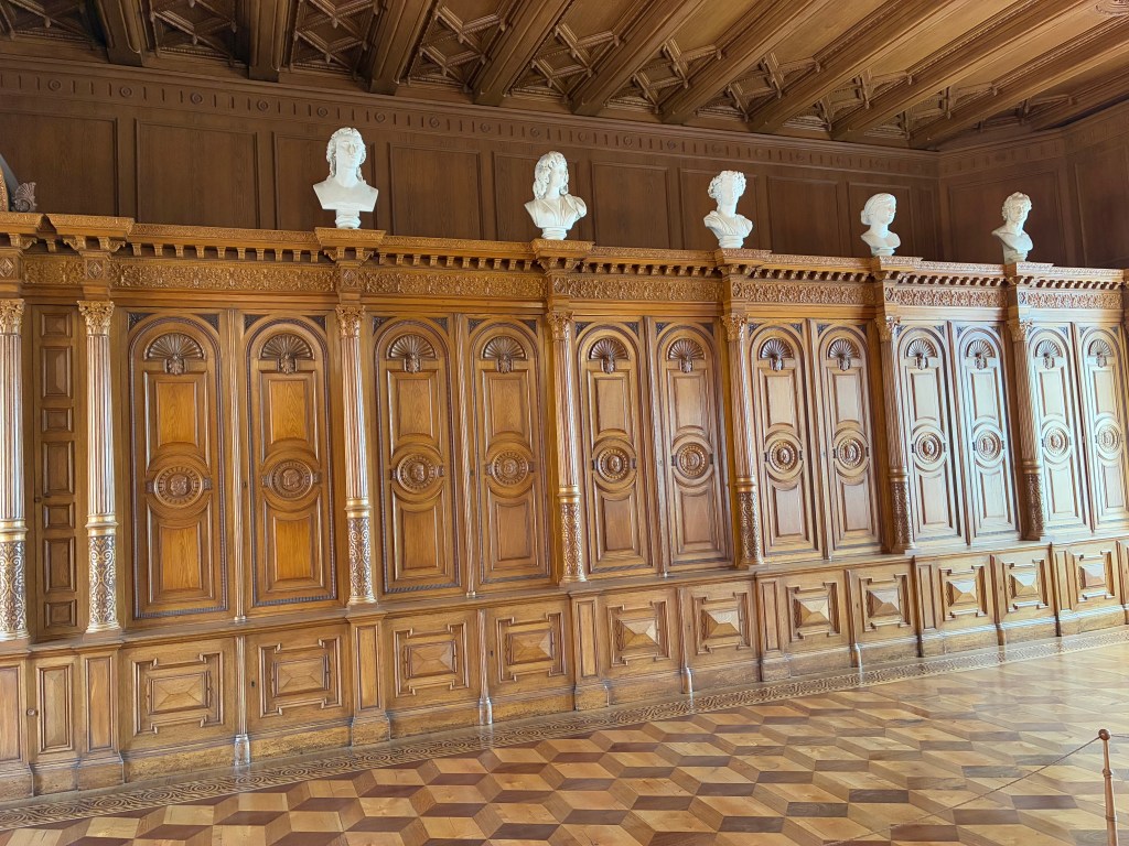 Schwerin Castle is massive. I don’t know if you can tell from the pictures, but they were working on the church section and there was a lot of scaffolding. I’m not even sure you could visit it or not. The signs directed us to the side of the castle to enter and see the reconstructed rooms. We opted to get the audio guide to learn more about the castle. They were 2 euros extra from admission. After receiving our guides, we had to climb two stories (or take an elevator).