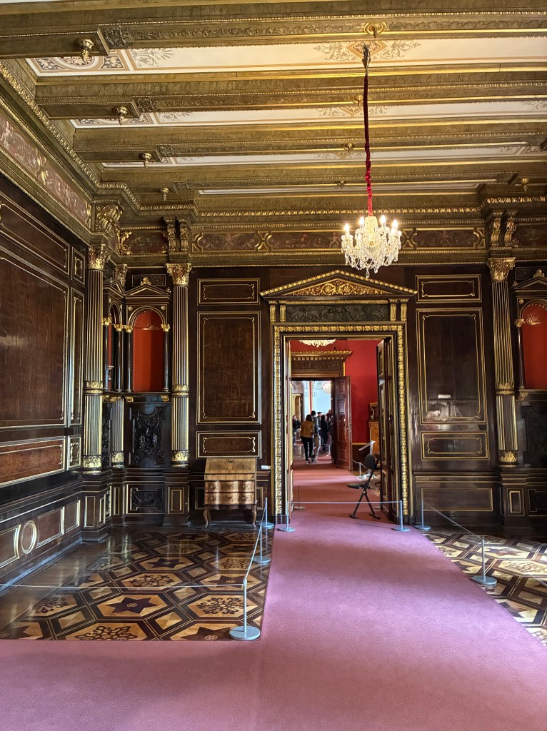 The library bookshelves were so beautiful, but there were no books. They were burned in the fire, is what our audio guide told us, or were they taken by Nazis? No one is mentioning that part of history in this guide.