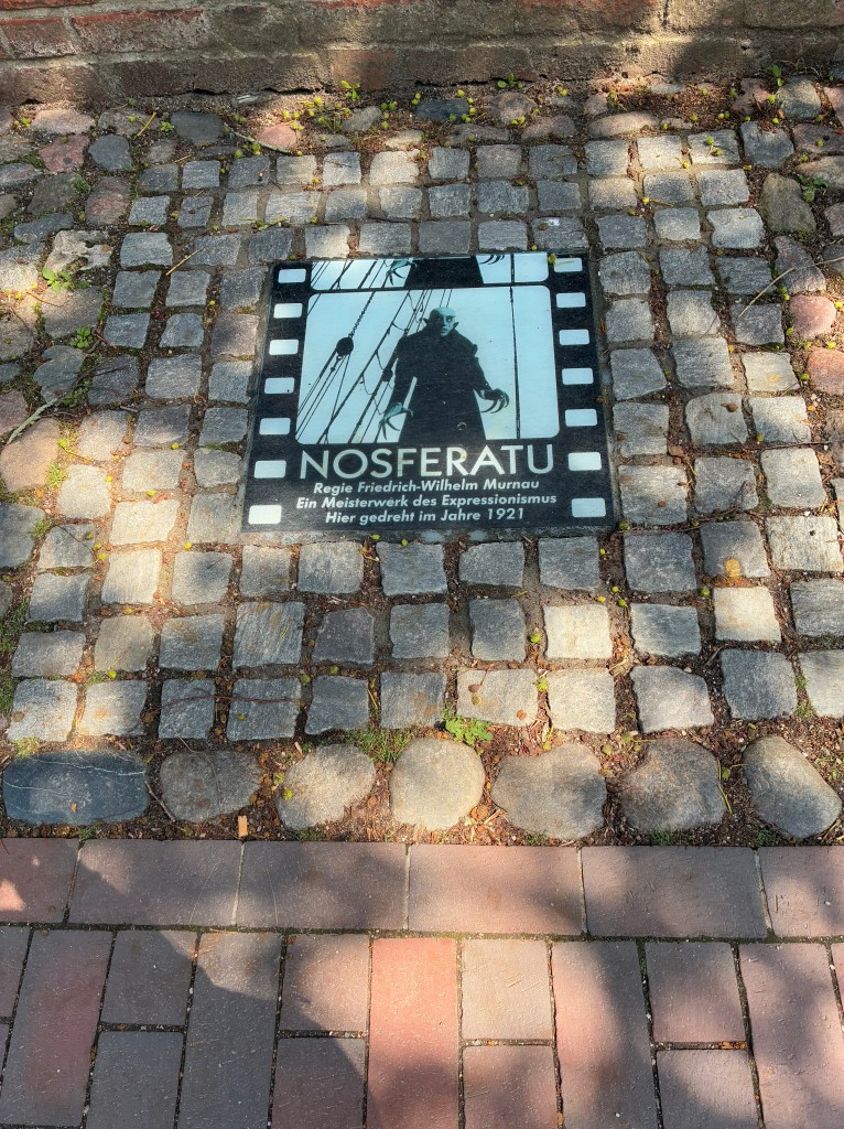 A neat note about Wismar is that it is the setting of the 1922 <Nosferatu: A Symphony of Horror>. There are markers like these around the city to denote where the filmmaker shot some of their scenes for the movie. Although the 1922 movie got in trouble for copyright infringement by Bram Stoker’s widow and all the copies were to be destroyed, some still circulated in Europe. They made a new version in 2024, but it was filmed in Prague.