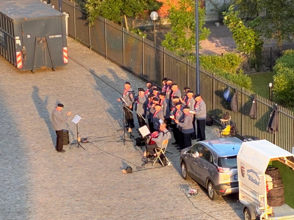 After cheering for the boat staff and listening to a couple songs by the entertainment staff, we went back to our room to relax. We had our balcony door open and could hear some music. I poked my head out and found this German men’s choir singing. Apparently they did not have the attention of the rest of the boat yet, but eventually people were listening to them. They sang a couple of songs in English, like “Yellow Submarine”, but I enjoyed the ones in German so much more.