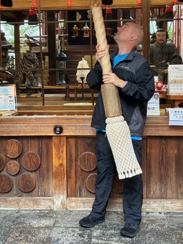 There is a temple at the end of the market. My husband had to check it out. It looks like a gong, but the sound was like wind chimes.
