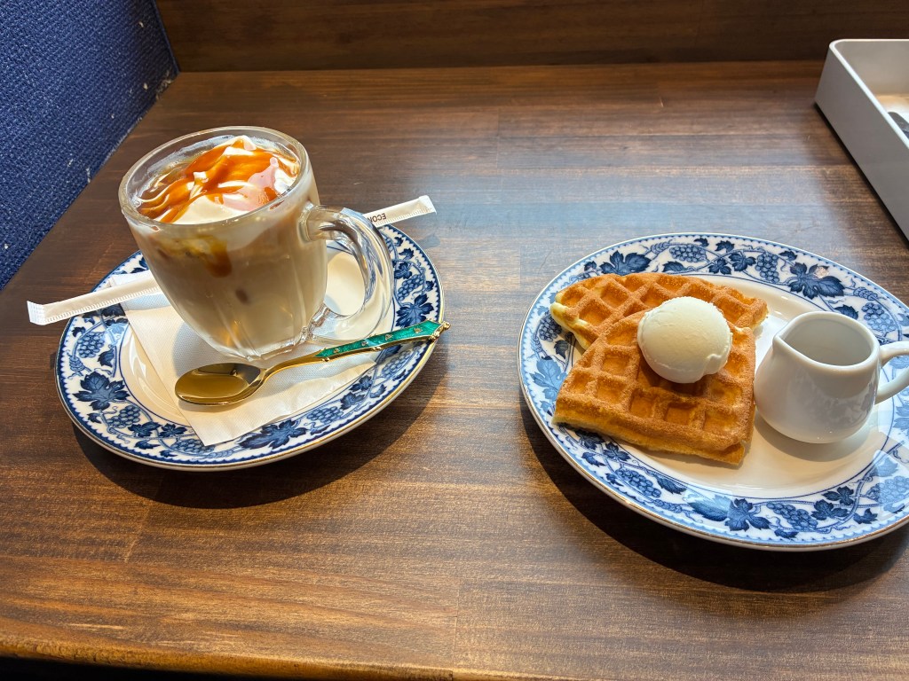 I like to have a coffee after lunch. We stopped at this cute coffee and waffle shop, so I had to try a waffle. Both were so good.
