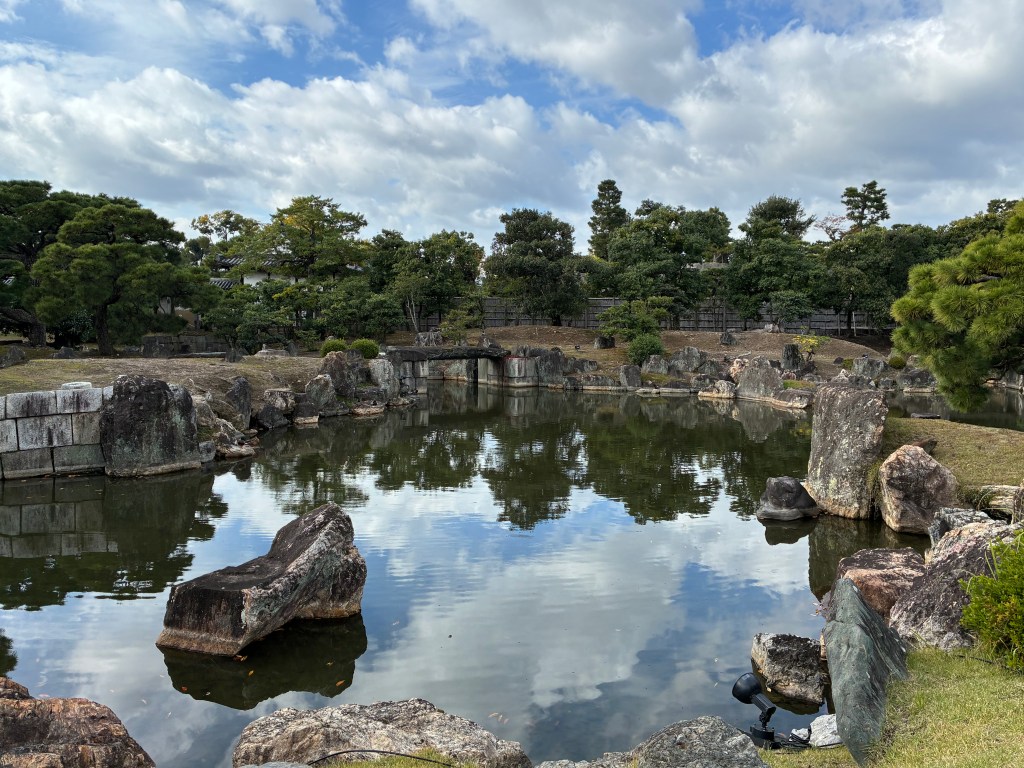 The Ninomaru Garden (also located in this complex) was created in 1626. There is one large island representing paradise and two smaller ones (cranes and turtles). It was very peaceful.