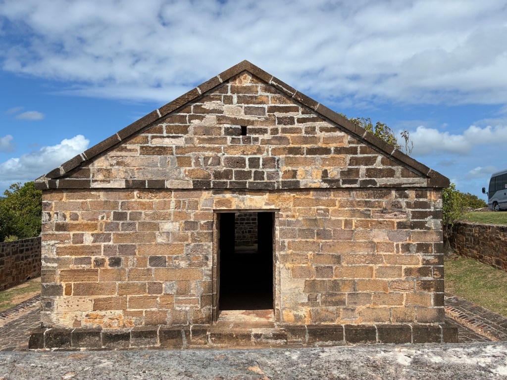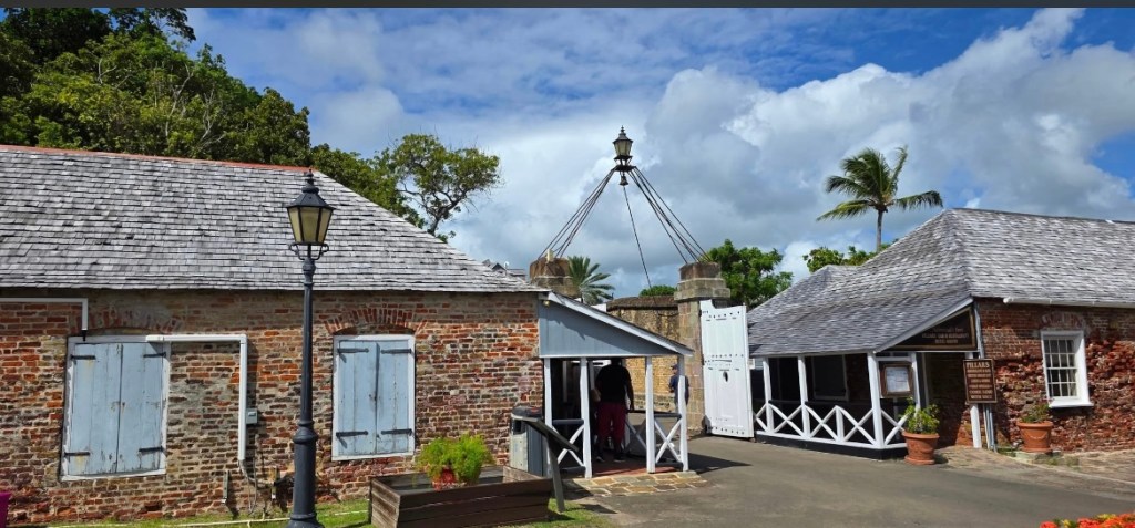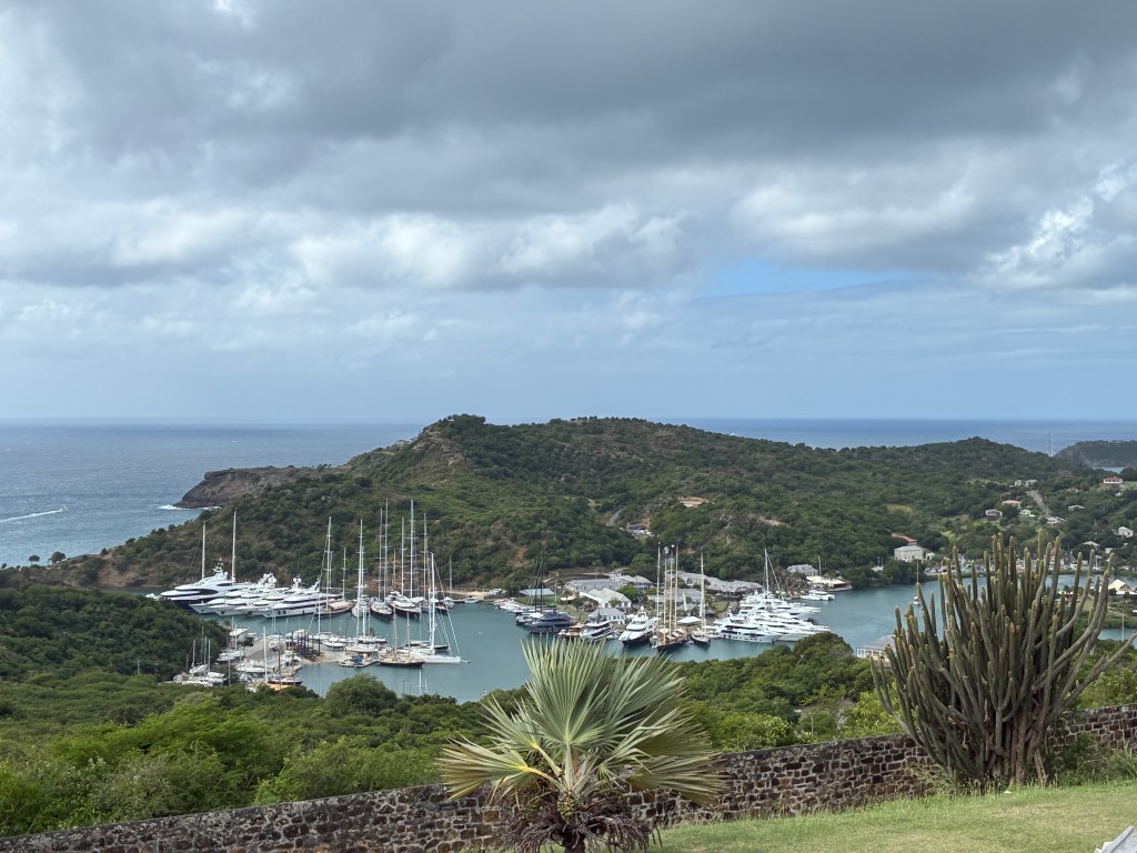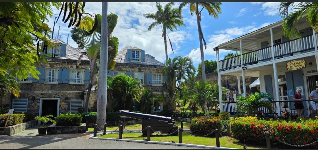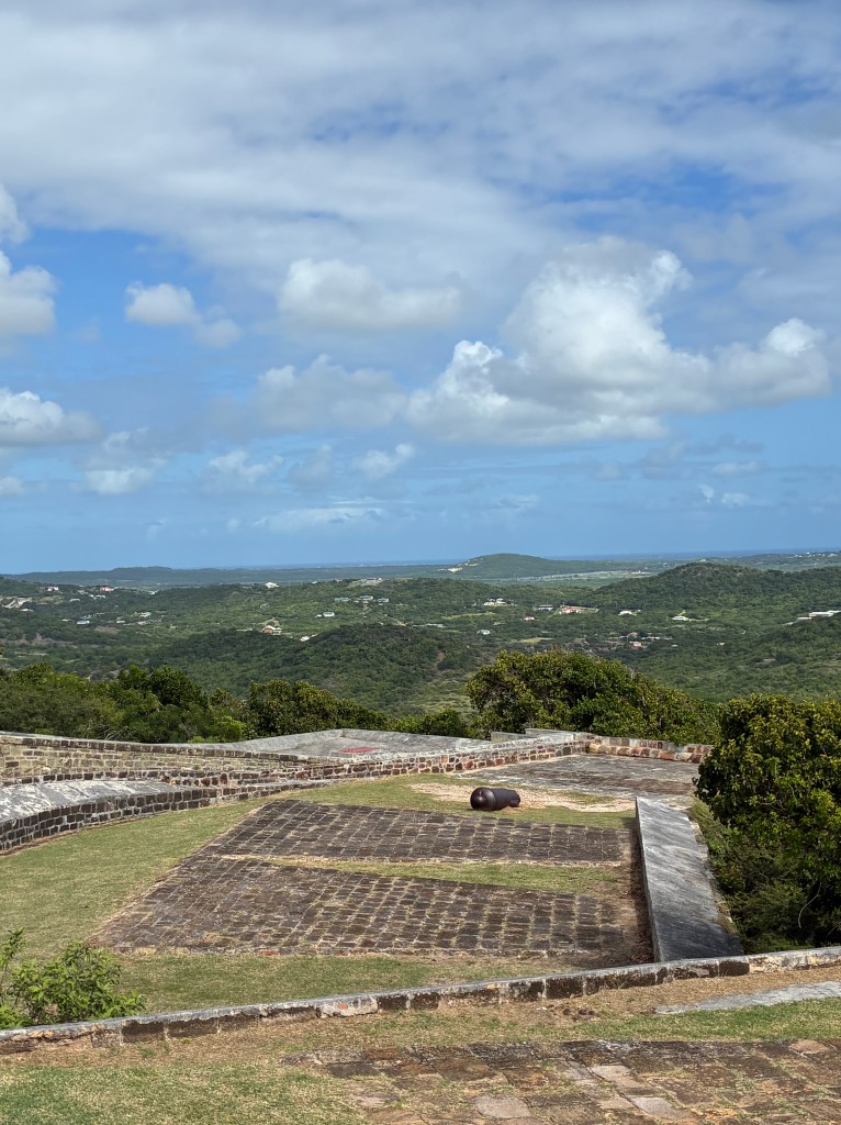 Then we drove over to a different area that was also on top of the mountain to a building that had a presentation about the history of the island. We used one of the parts of the ticket at this area. After the presentation, they took us out to overlook Nelson’s Dockyard.