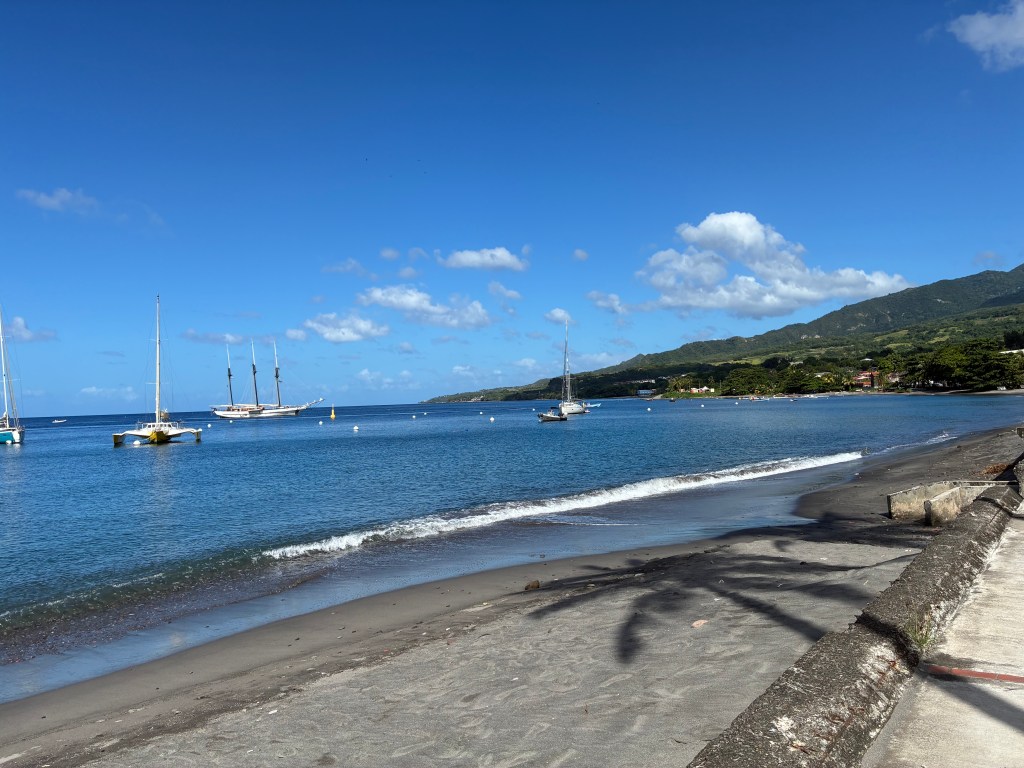 We stopped at the supermarket next to the church and got some tasty juices and a fresh, still warm baguette and a chocolate croissant. It was a simple look into one town of Martinique.