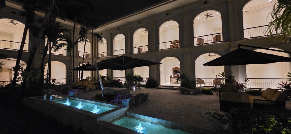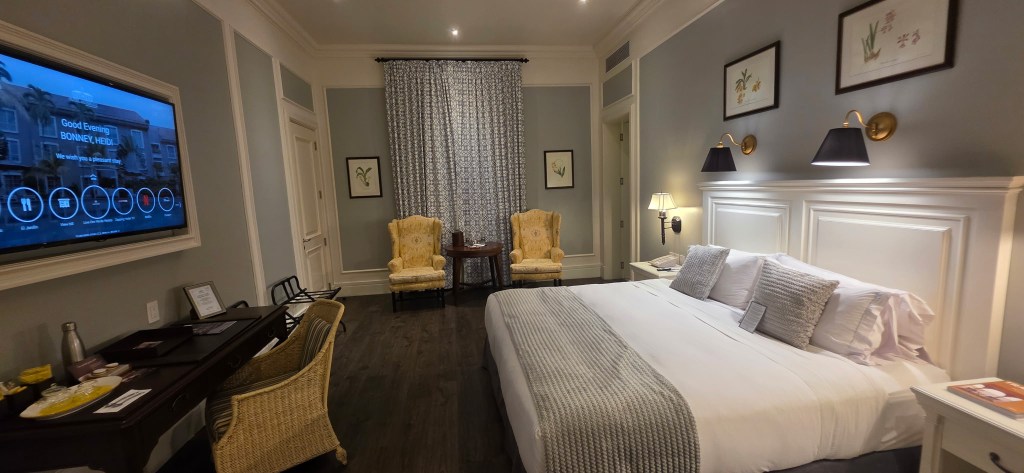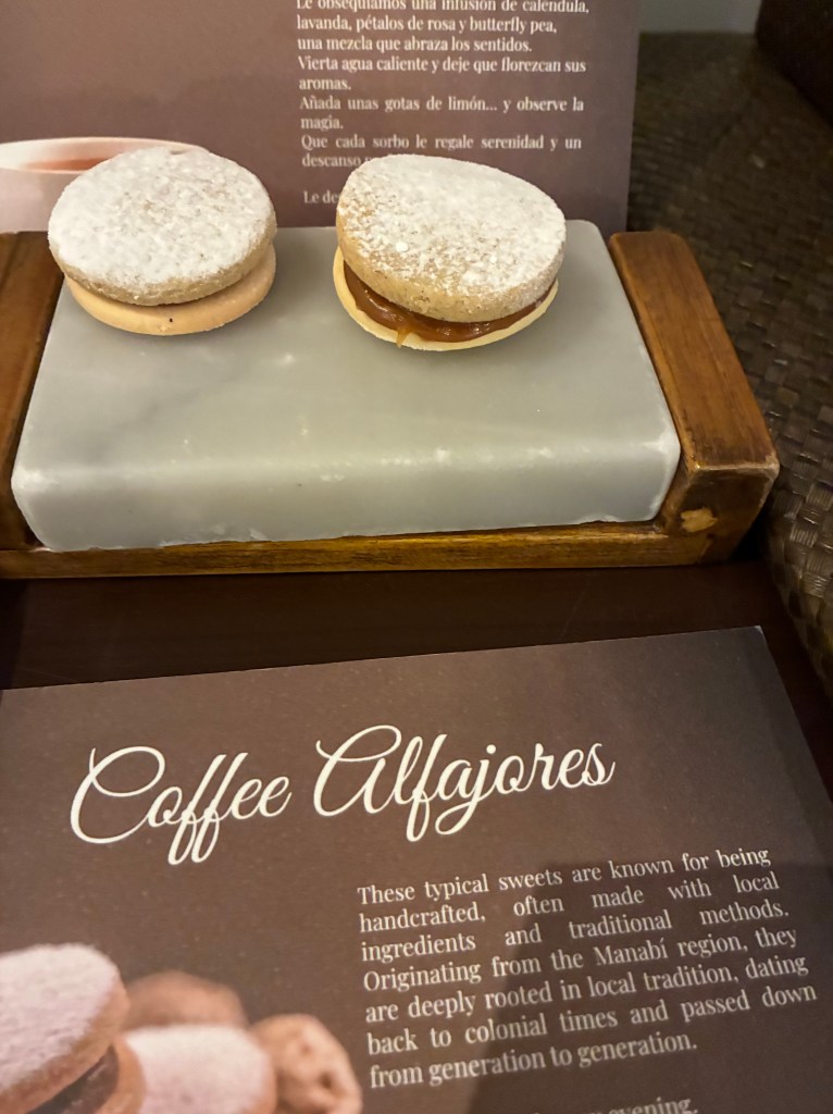 Our van ride to the hotel only took around 15-20 minutes. It was dark and there were a lot of stores lit up at night to see. Our hotel had a gate and a big fence all around the property. We were asked to stay within the property itself. It is called Hotel del Parque. They have an animal sanctuary on site that you can visit. It is a beautiful hotel. Our room was huge and so was the bathroom. We had coffee alfajores to try (traditional cookies with a coffee cream inside) and they left us lemon syrup, sugar, and sparkling water to make our own lemonade. All were delicious.